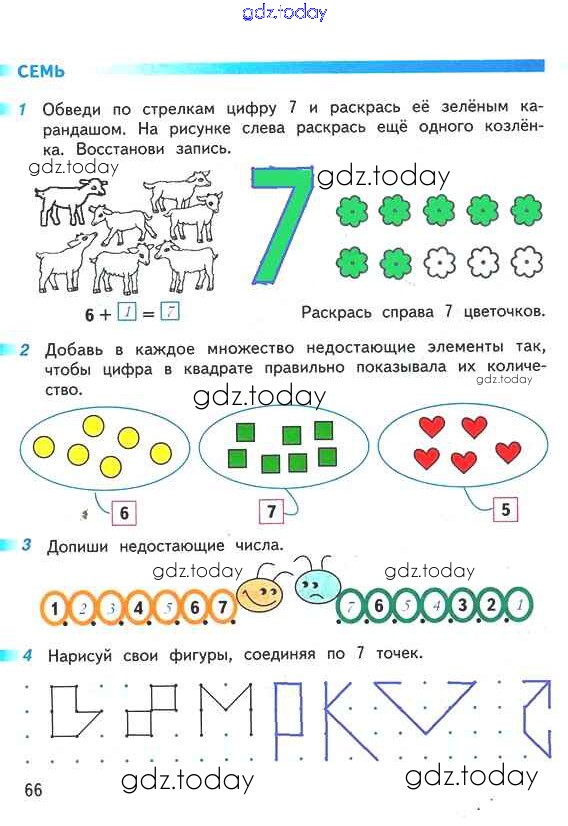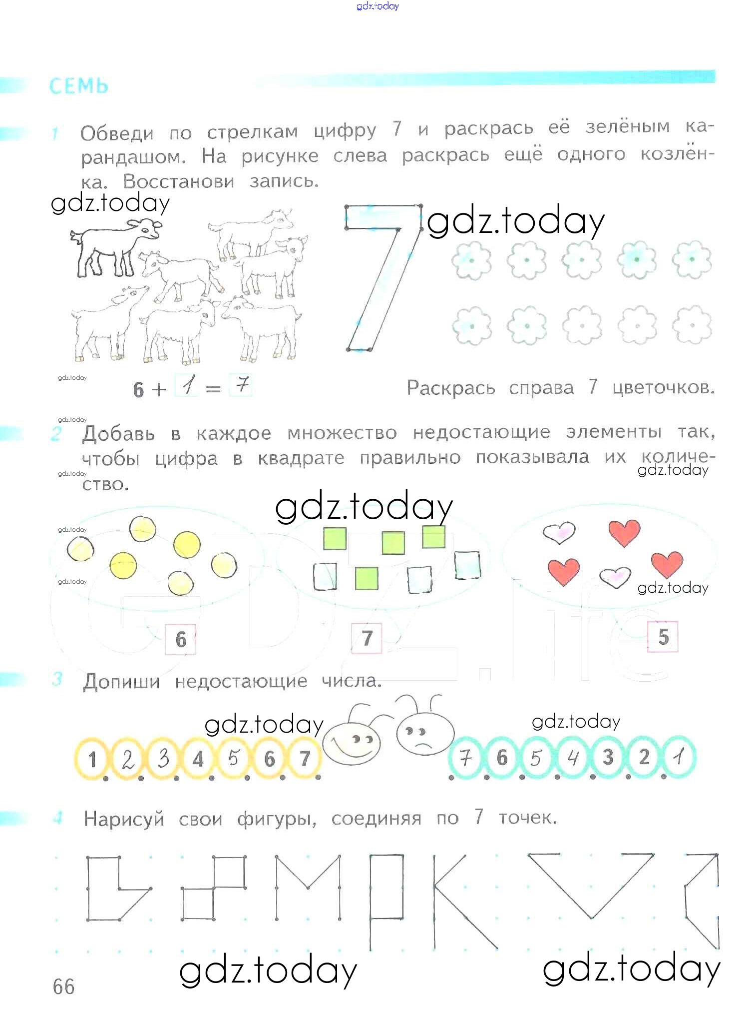 На страницах сайта gdz.today вы найдете учебный и вспомогательный материал, направленный на улучшения знаний школьной программы. ГДЗ - онлайн мир знаний Решение к части 1 (страницы) 66 Рабочей тетради по Математике для 1 класса Дорофеев, Миракова Просвещение Перспектива 2016