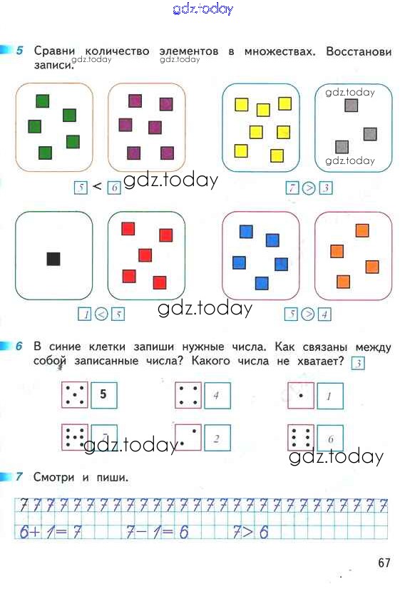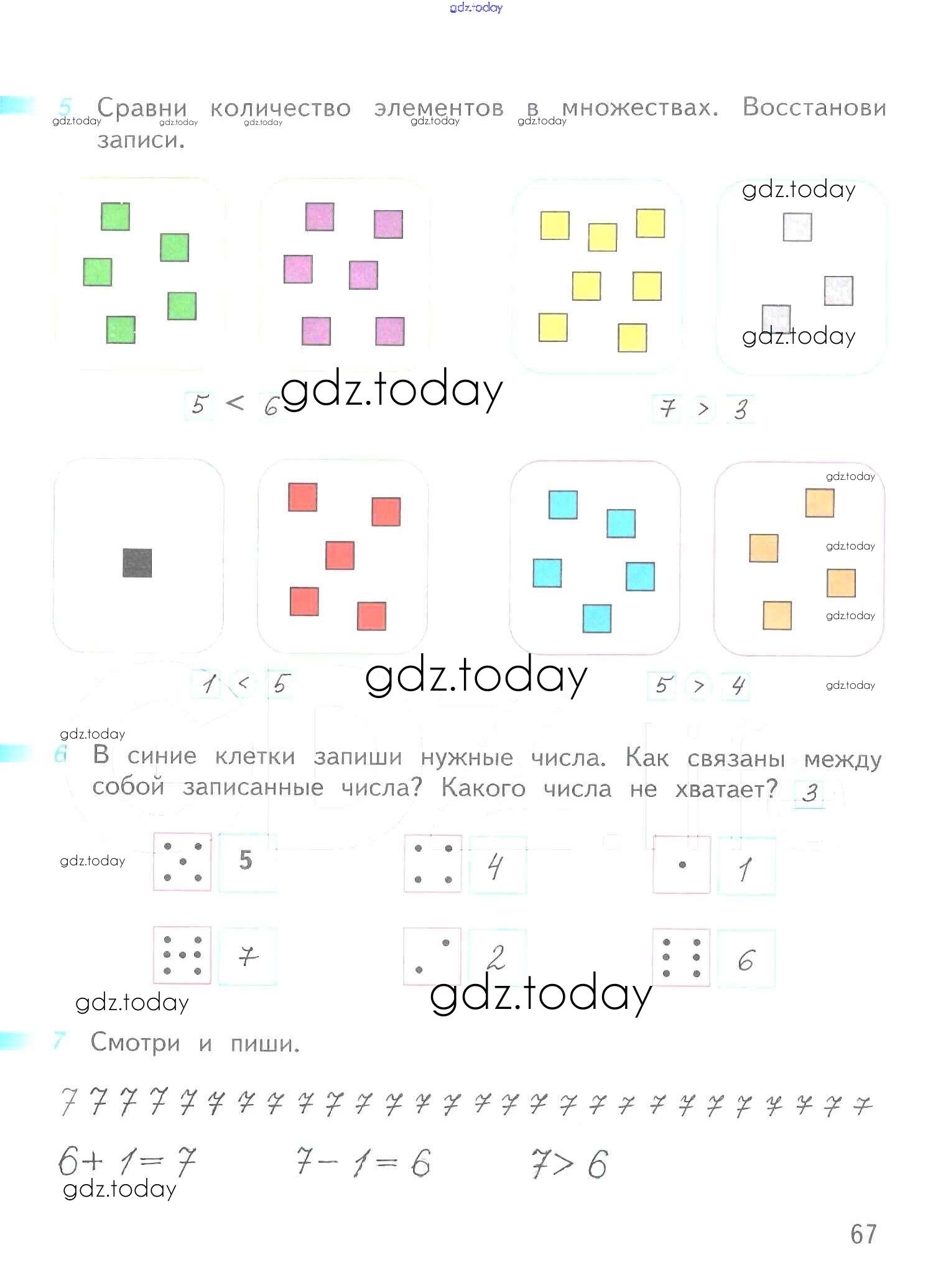 На страницах сайта gdz.today вы найдете учебный и вспомогательный материал, направленный на улучшения знаний школьной программы. ГДЗ - онлайн мир знаний Решение к части 1 (страницы) 67 Рабочей тетради по Математике для 1 класса Дорофеев, Миракова Просвещение Перспектива 2016
