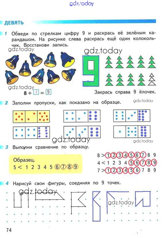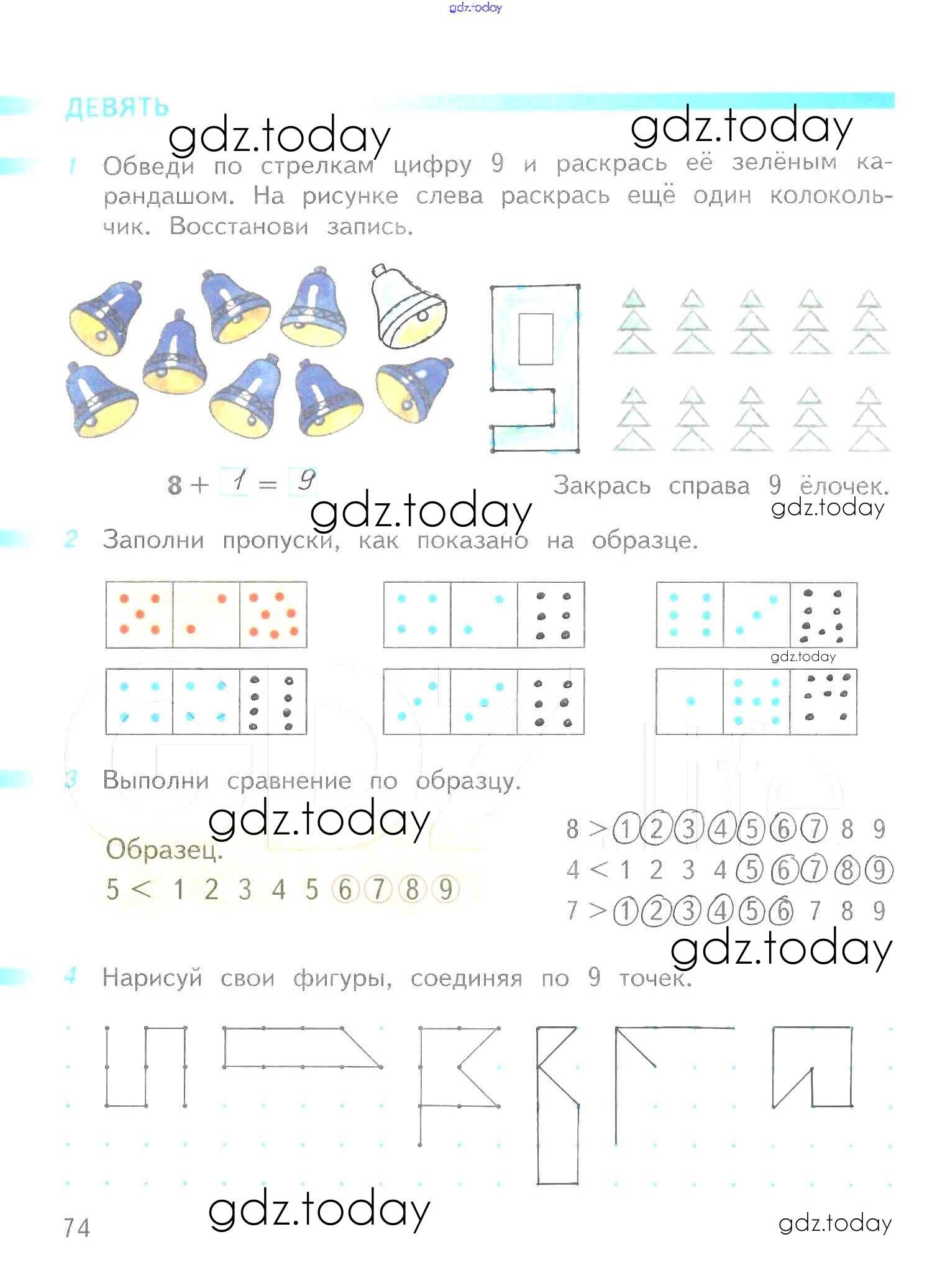 На страницах сайта gdz.today вы найдете учебный и вспомогательный материал, направленный на улучшения знаний школьной программы. ГДЗ - онлайн мир знаний Решение к части 1 (страницы) 74 Рабочей тетради по Математике для 1 класса Дорофеев, Миракова Просвещение Перспектива 2016