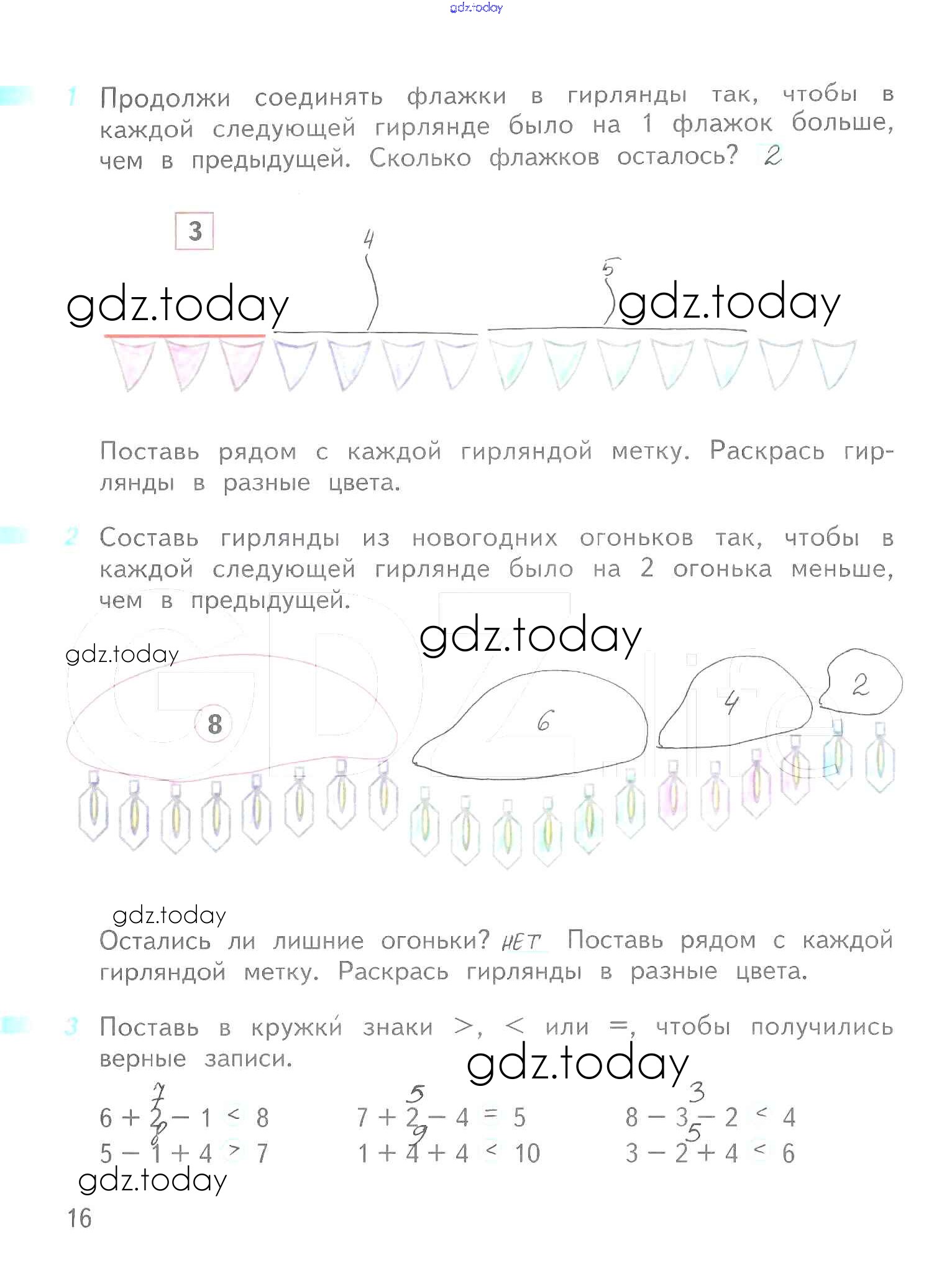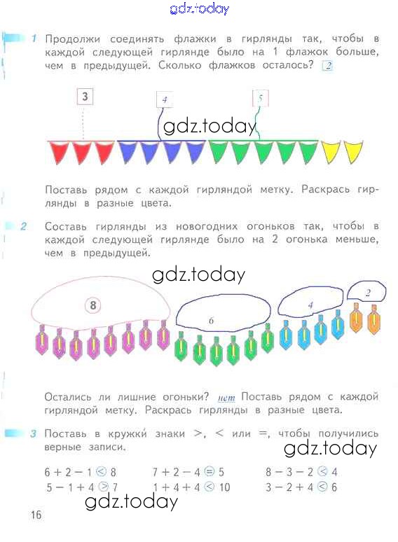 Ответы к Решение к части 2 (страницы) 16 Рабочей тетради по Математике для 1 класса Дорофеев, Миракова Просвещение Перспектива 2016