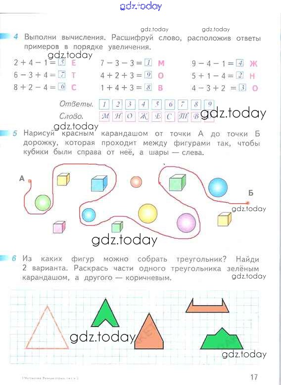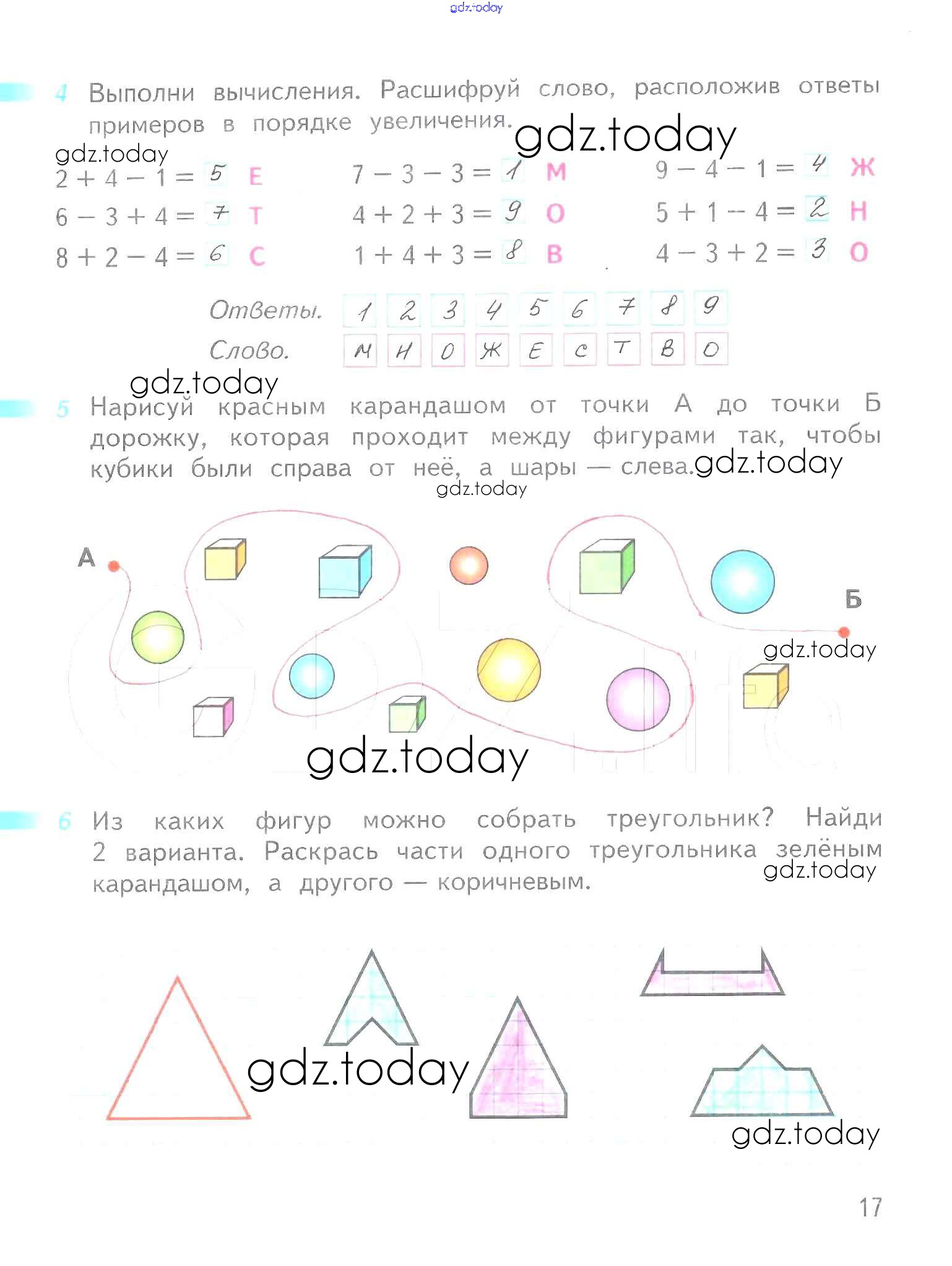 Ответы к Решение к части 2 (страницы) 17 Рабочей тетради по Математике для 1 класса Дорофеев, Миракова Просвещение Перспектива 2016