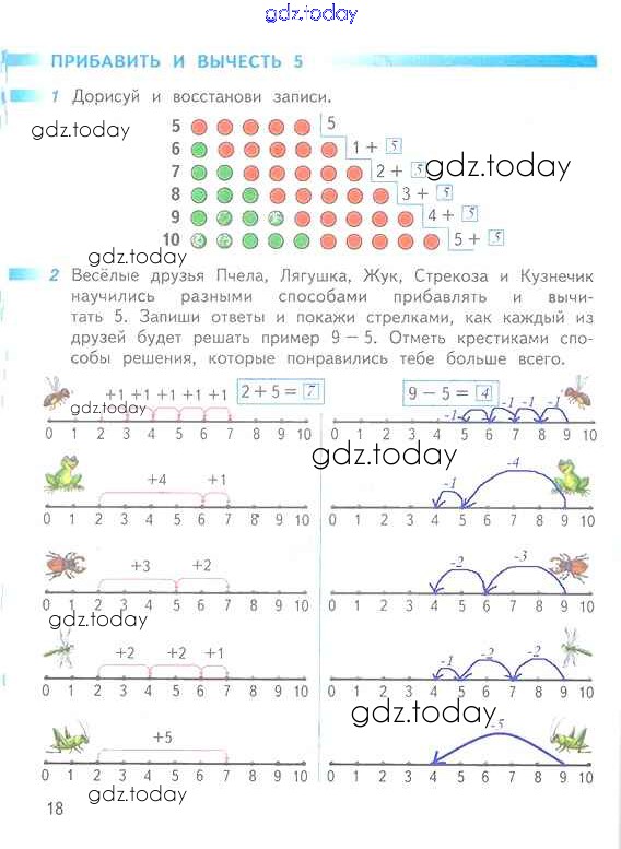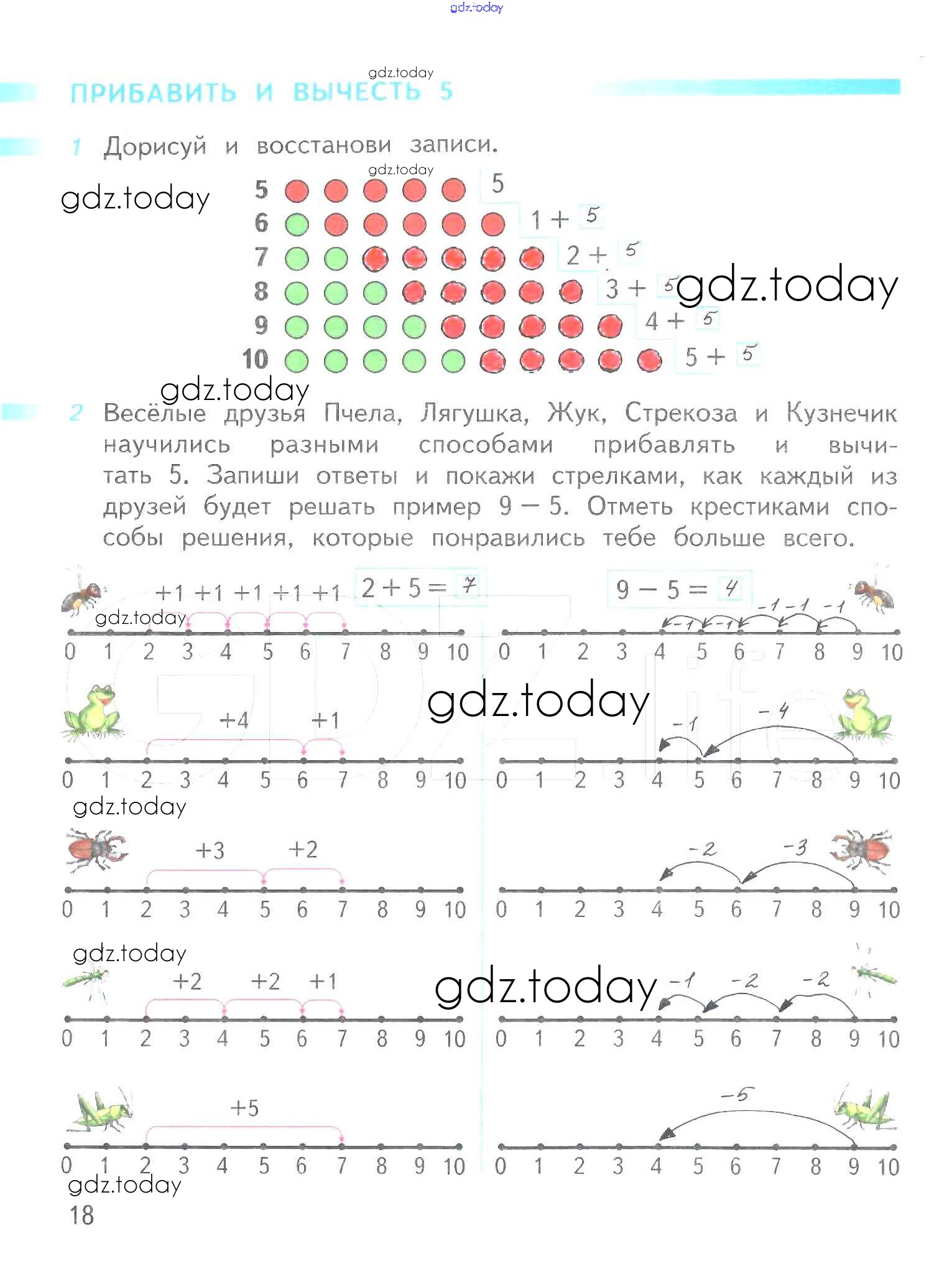 Ответы к Решение к части 2 (страницы) 18 Рабочей тетради по Математике для 1 класса Дорофеев, Миракова Просвещение Перспектива 2016