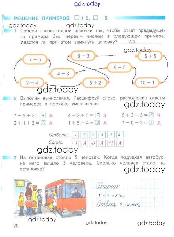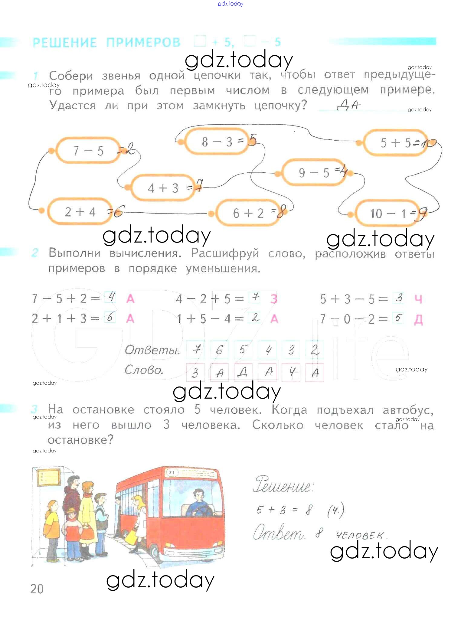 Ответы к Решение к части 2 (страницы) 20 Рабочей тетради по Математике для 1 класса Дорофеев, Миракова Просвещение Перспектива 2016