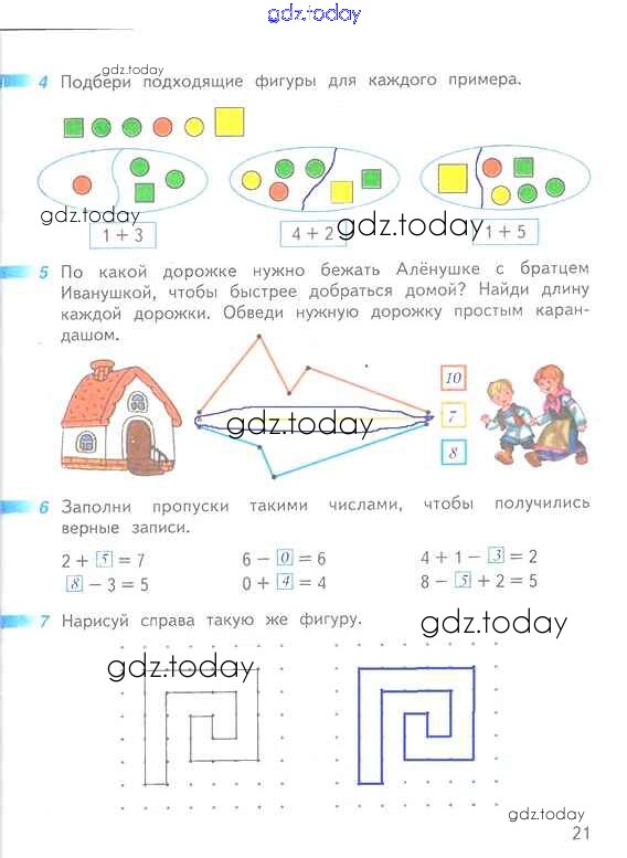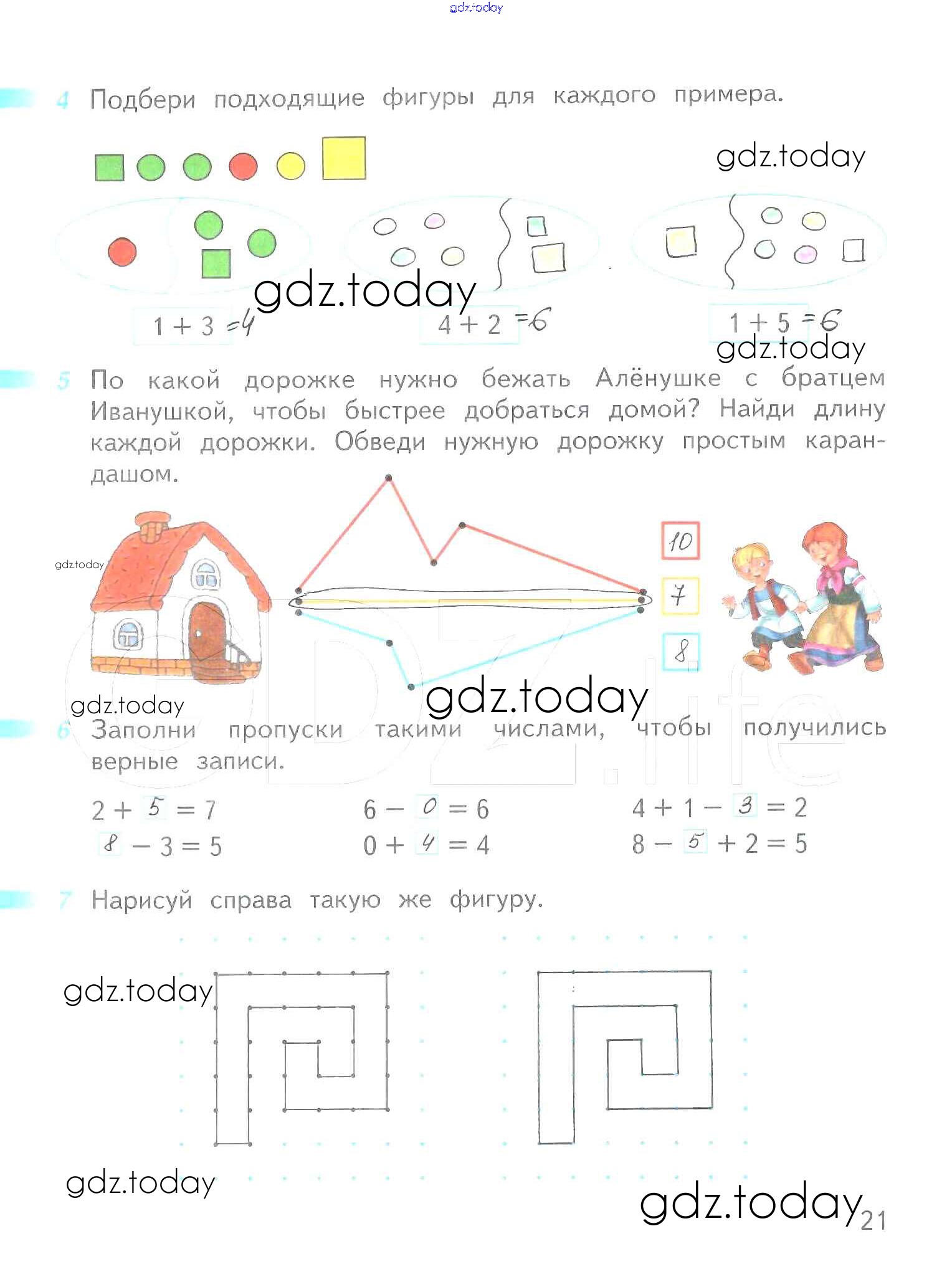 На страницах сайта gdz.today вы найдете учебный и вспомогательный материал, направленный на улучшения знаний школьной программы. ГДЗ - онлайн мир знаний Решение к части 2 (страницы) 21 Рабочей тетради по Математике для 1 класса Дорофеев, Миракова Просвещение Перспектива 2016