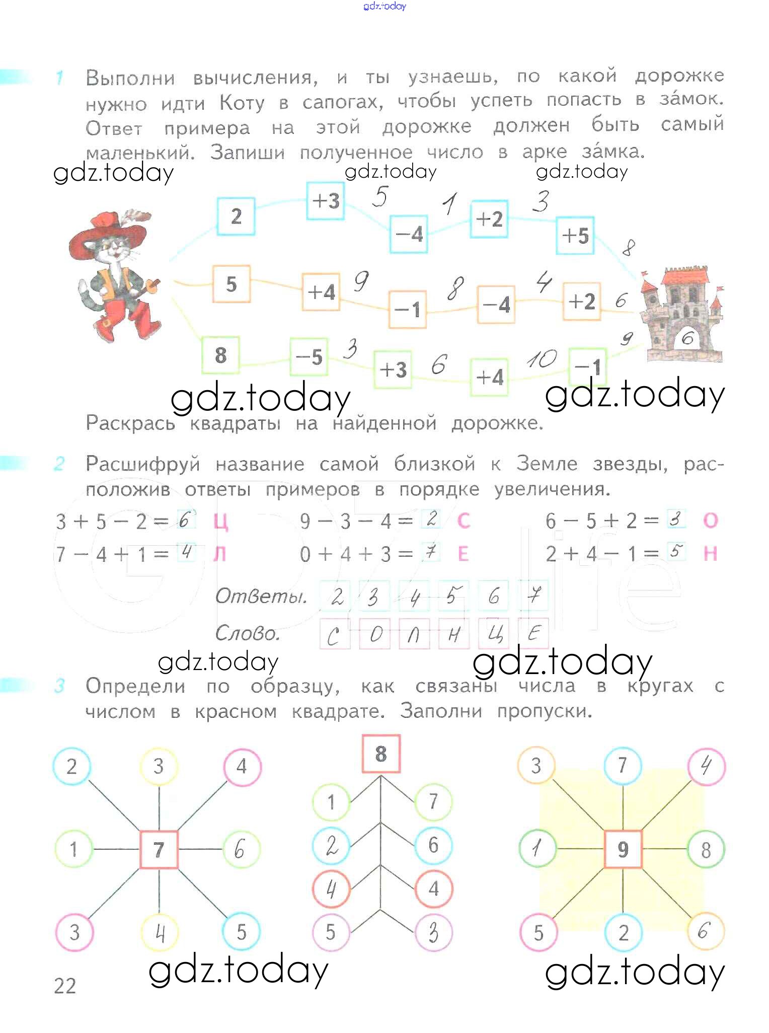 Ответы к Решение к части 2 (страницы) 22 Рабочей тетради по Математике для 1 класса Дорофеев, Миракова Просвещение Перспектива 2016
