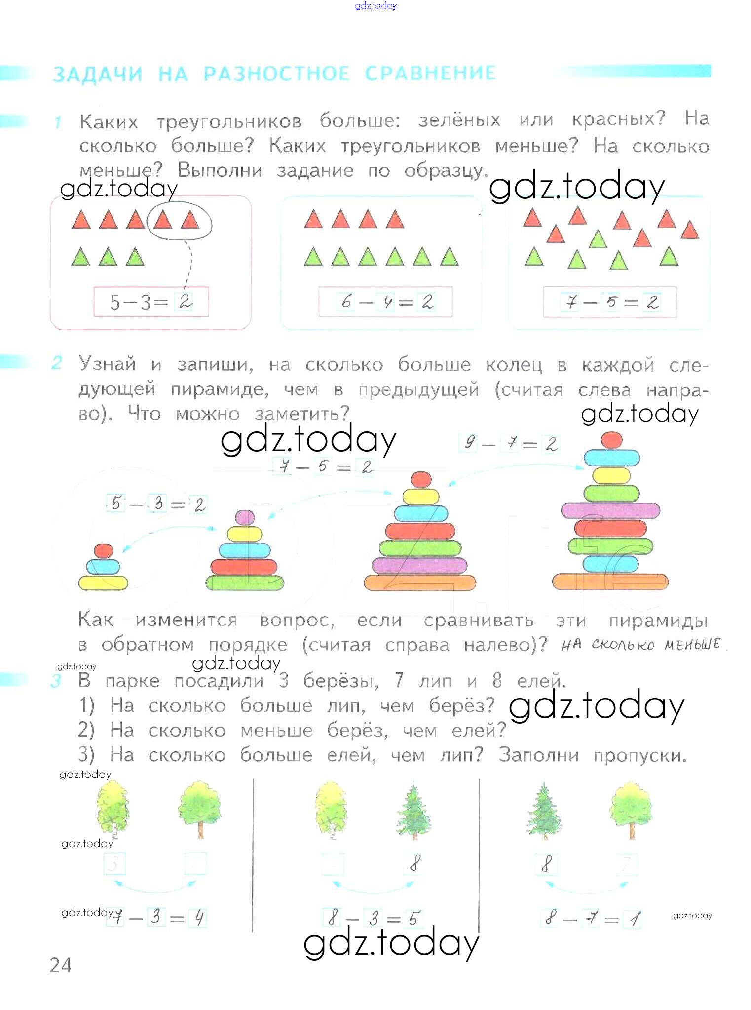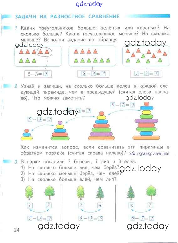 На страницах сайта gdz.today вы найдете учебный и вспомогательный материал, направленный на улучшения знаний школьной программы. ГДЗ - онлайн мир знаний Решение к части 2 (страницы) 24 Рабочей тетради по Математике для 1 класса Дорофеев, Миракова Просвещение Перспектива 2016