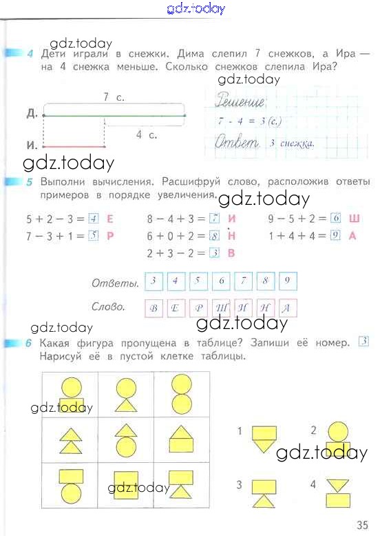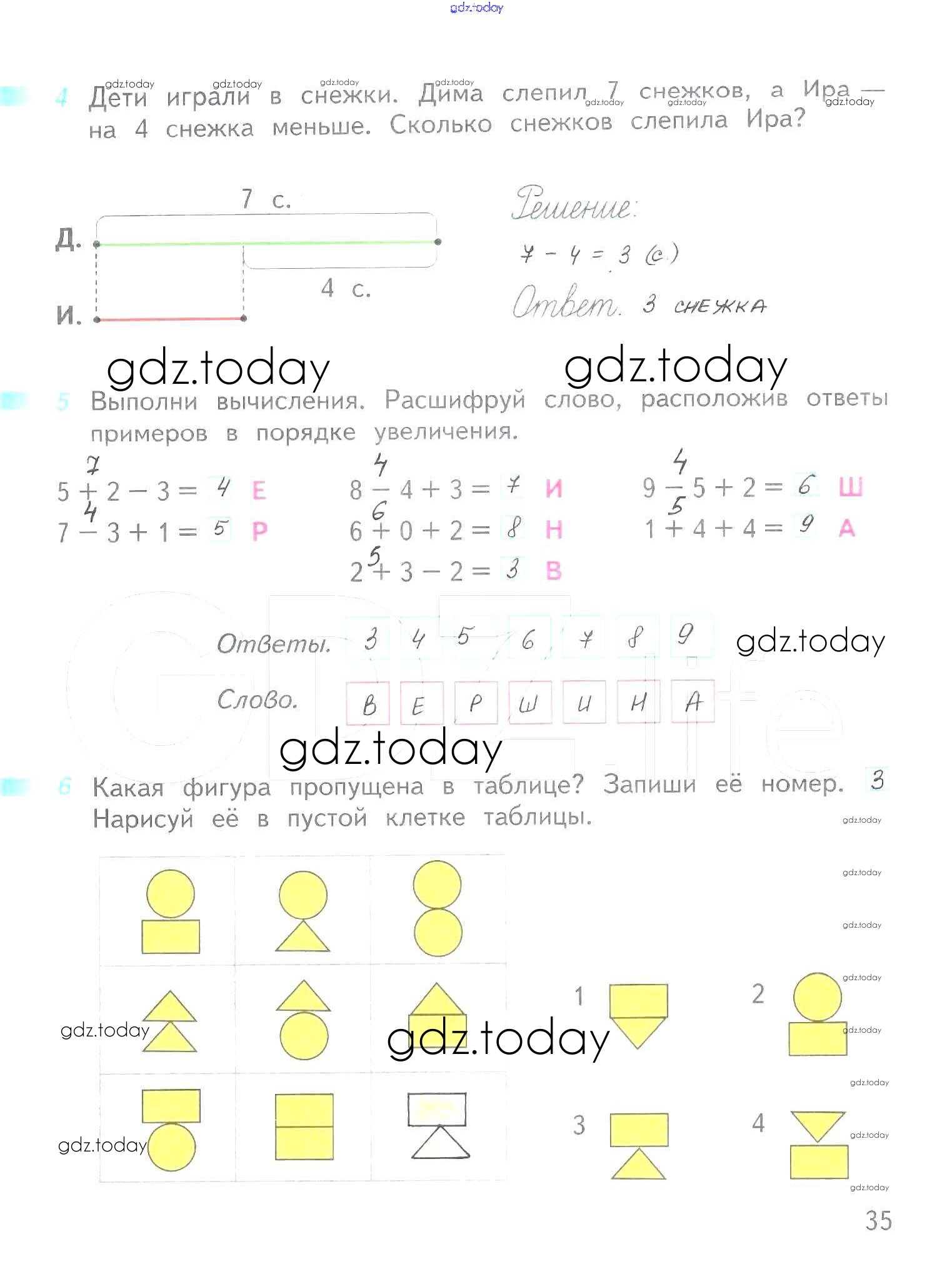 Ответы к Решение к части 2 (страницы) 35 Рабочей тетради по Математике для 1 класса Дорофеев, Миракова Просвещение Перспектива 2016