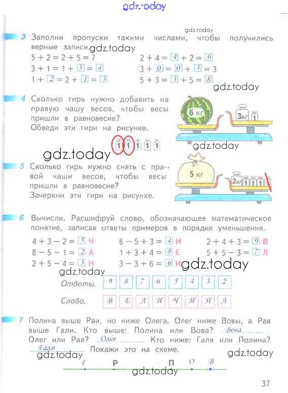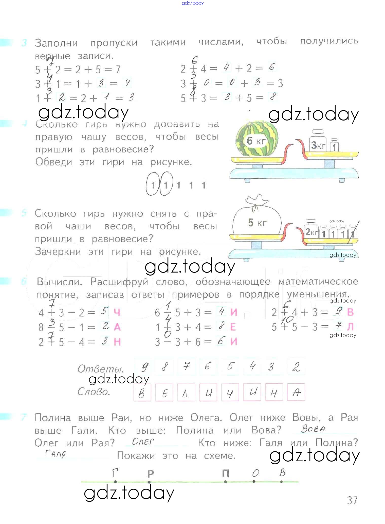 Ответы к Решение к части 2 (страницы) 37 Рабочей тетради по Математике для 1 класса Дорофеев, Миракова Просвещение Перспектива 2016