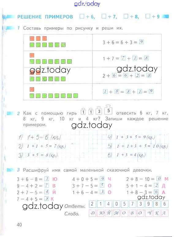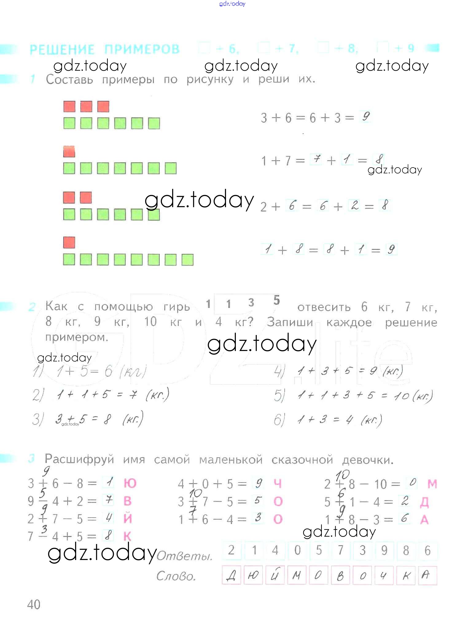 Ответы к Решение к части 2 (страницы) 40 Рабочей тетради по Математике для 1 класса Дорофеев, Миракова Просвещение Перспектива 2016