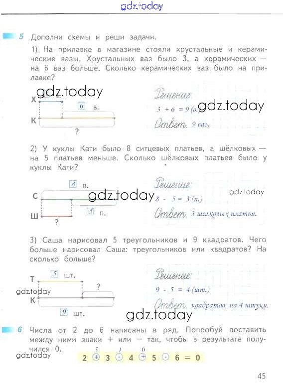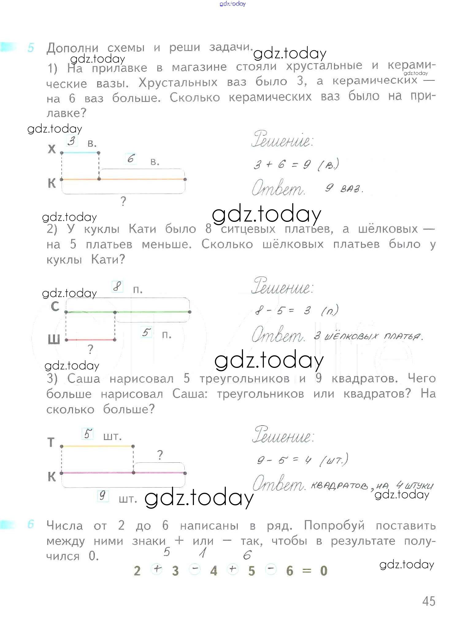 Ответы к Решение к части 2 (страницы) 45 Рабочей тетради по Математике для 1 класса Дорофеев, Миракова Просвещение Перспектива 2016