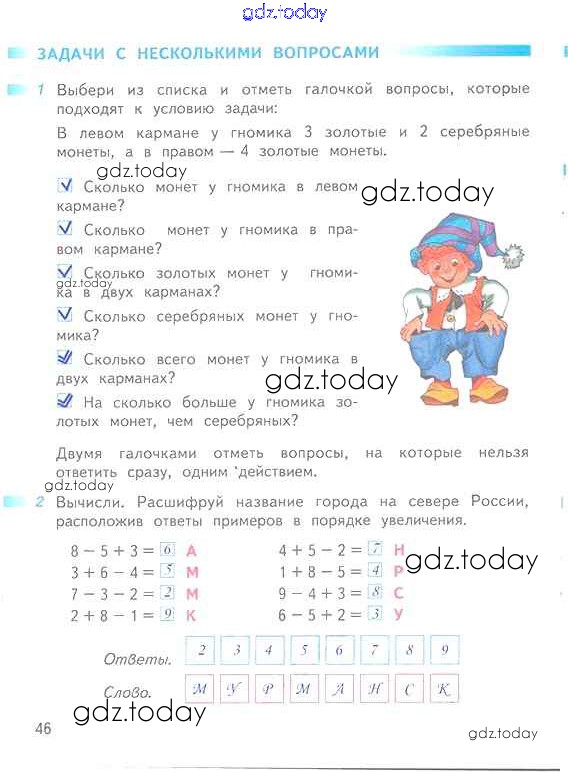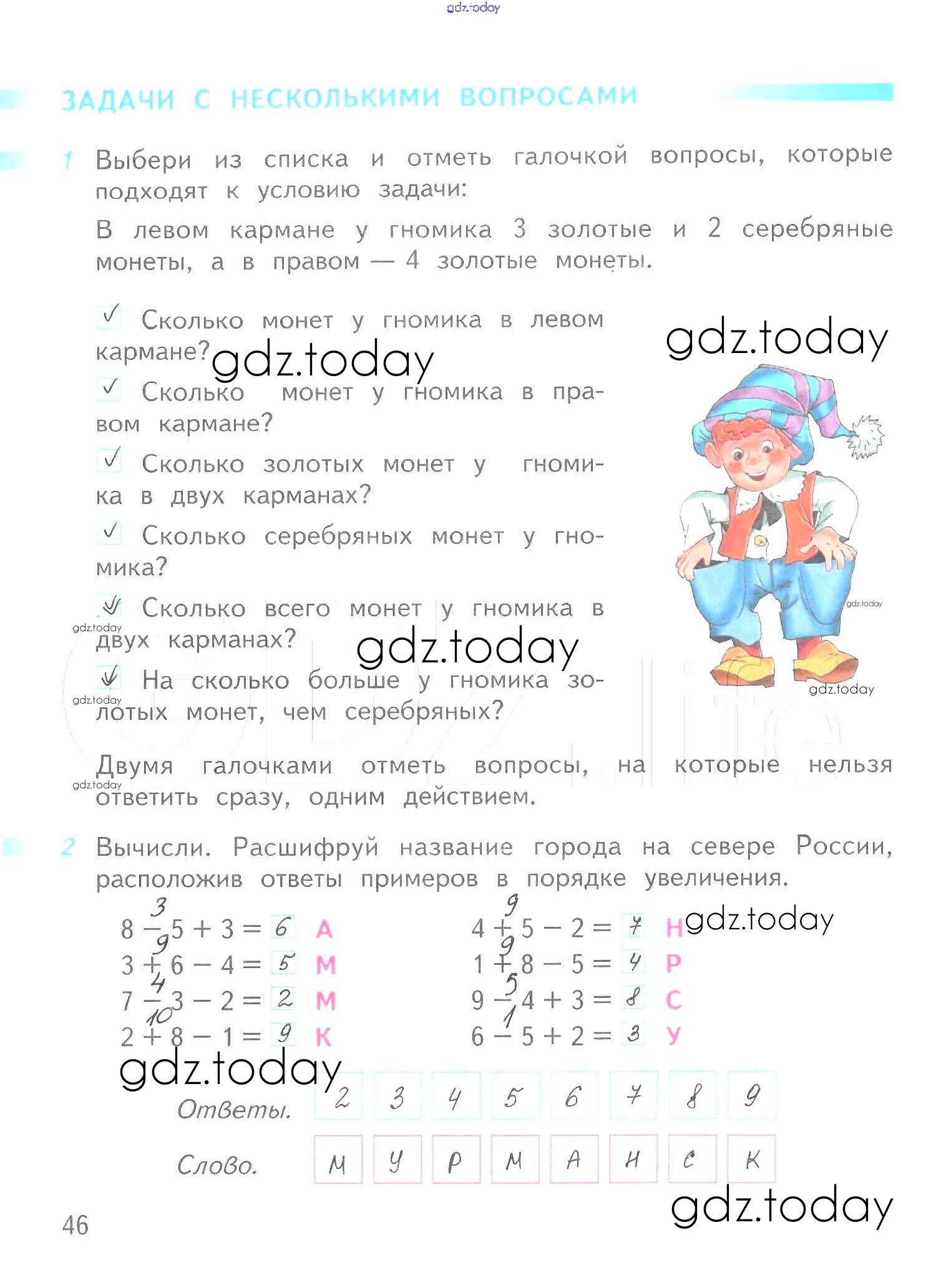 На страницах сайта gdz.today вы найдете учебный и вспомогательный материал, направленный на улучшения знаний школьной программы. ГДЗ - онлайн мир знаний Решение к части 2 (страницы) 46 Рабочей тетради по Математике для 1 класса Дорофеев, Миракова Просвещение Перспектива 2016