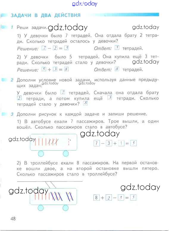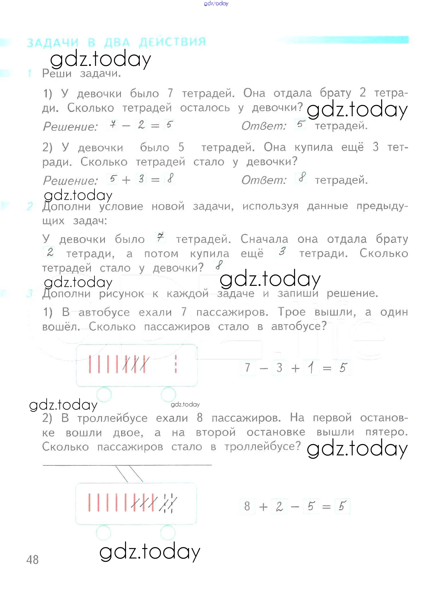 На страницах сайта gdz.today вы найдете учебный и вспомогательный материал, направленный на улучшения знаний школьной программы. ГДЗ - онлайн мир знаний Решение к части 2 (страницы) 48 Рабочей тетради по Математике для 1 класса Дорофеев, Миракова Просвещение Перспектива 2016