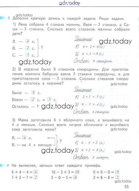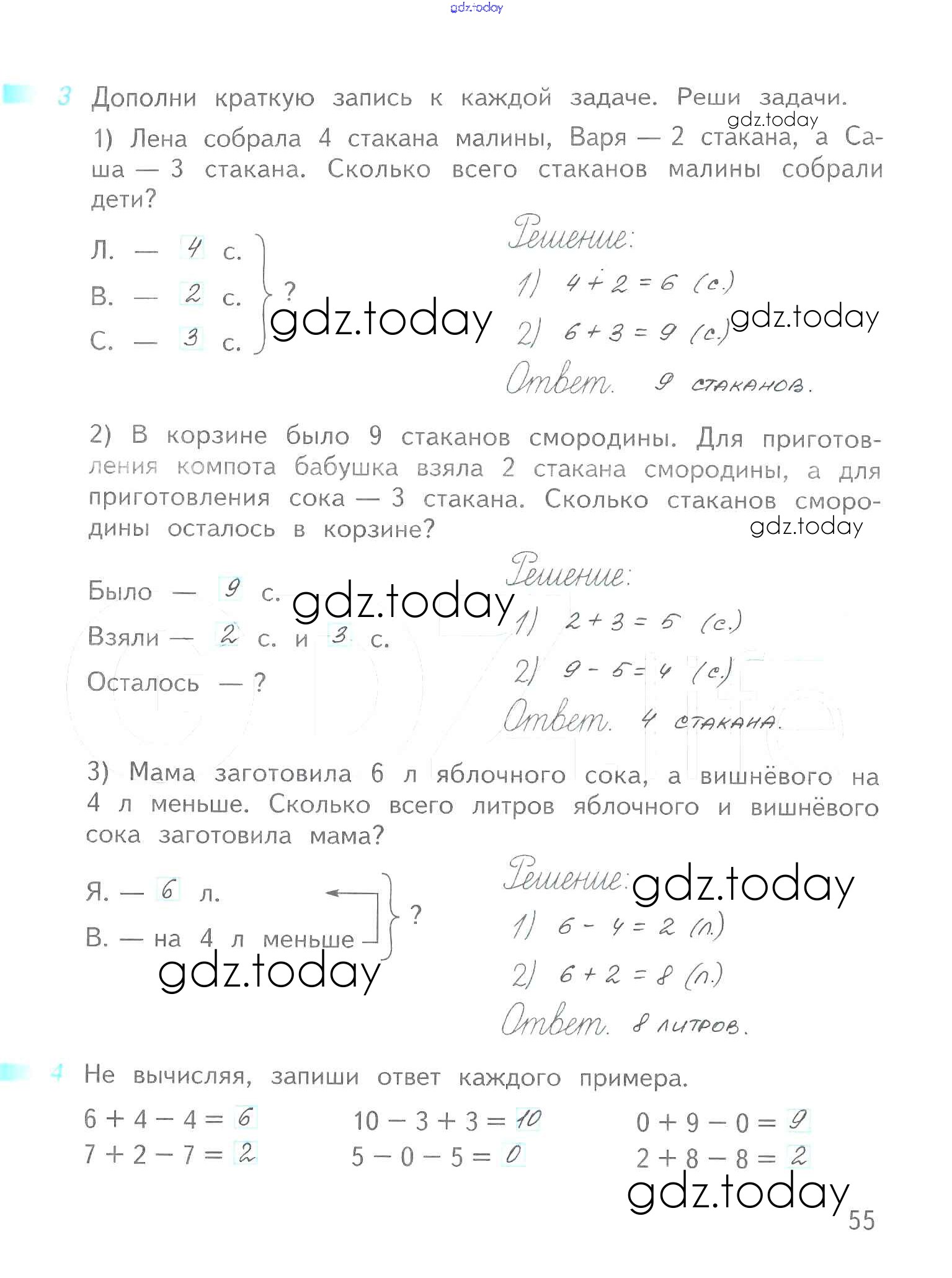 Ответы к Решение к части 2 (страницы) 55 Рабочей тетради по Математике для 1 класса Дорофеев, Миракова Просвещение Перспектива 2016