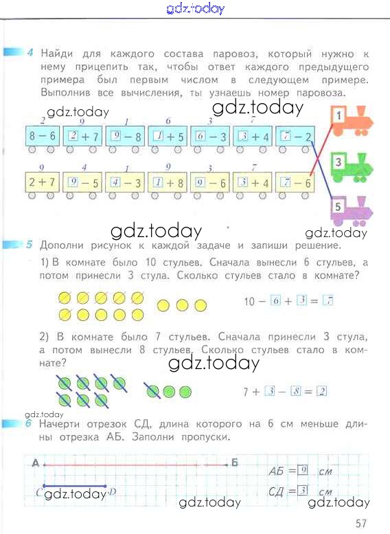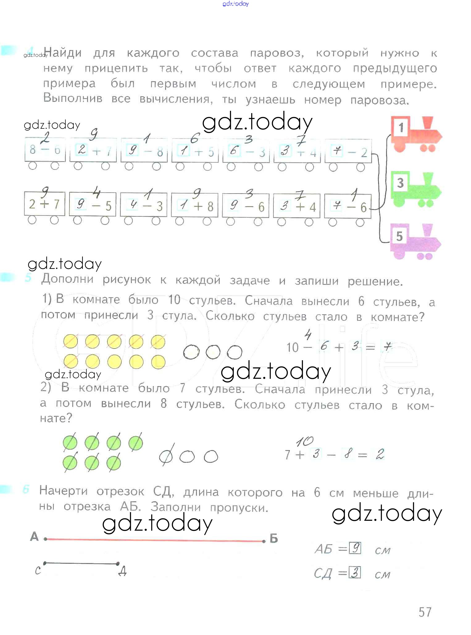 На страницах сайта gdz.today вы найдете учебный и вспомогательный материал, направленный на улучшения знаний школьной программы. ГДЗ - онлайн мир знаний Решение к части 2 (страницы) 57 Рабочей тетради по Математике для 1 класса Дорофеев, Миракова Просвещение Перспектива 2016