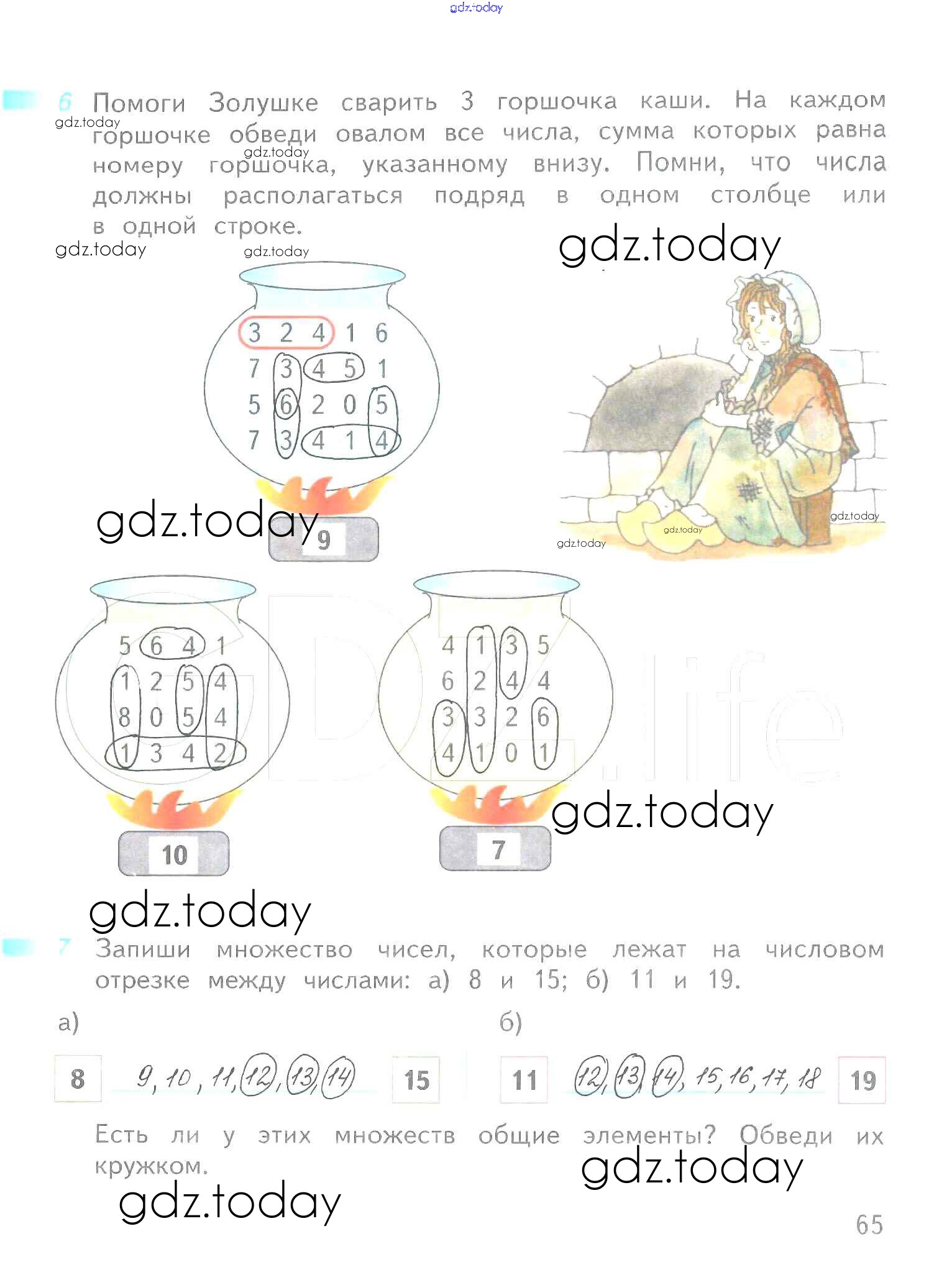 Ответы к Решение к части 2 (страницы) 65 Рабочей тетради по Математике для 1 класса Дорофеев, Миракова Просвещение Перспектива 2016