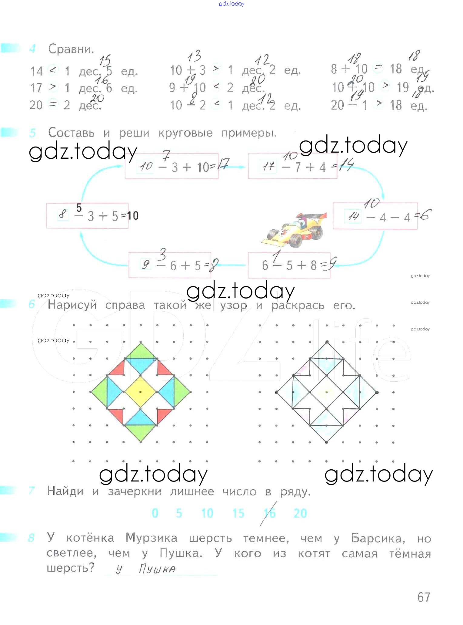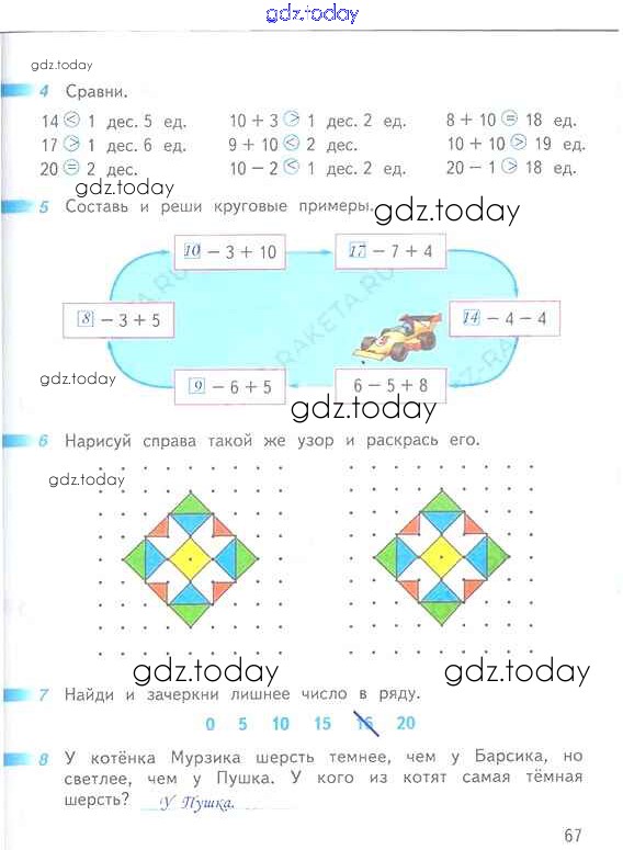 Ответы к Решение к части 2 (страницы) 67 Рабочей тетради по Математике для 1 класса Дорофеев, Миракова Просвещение Перспектива 2016