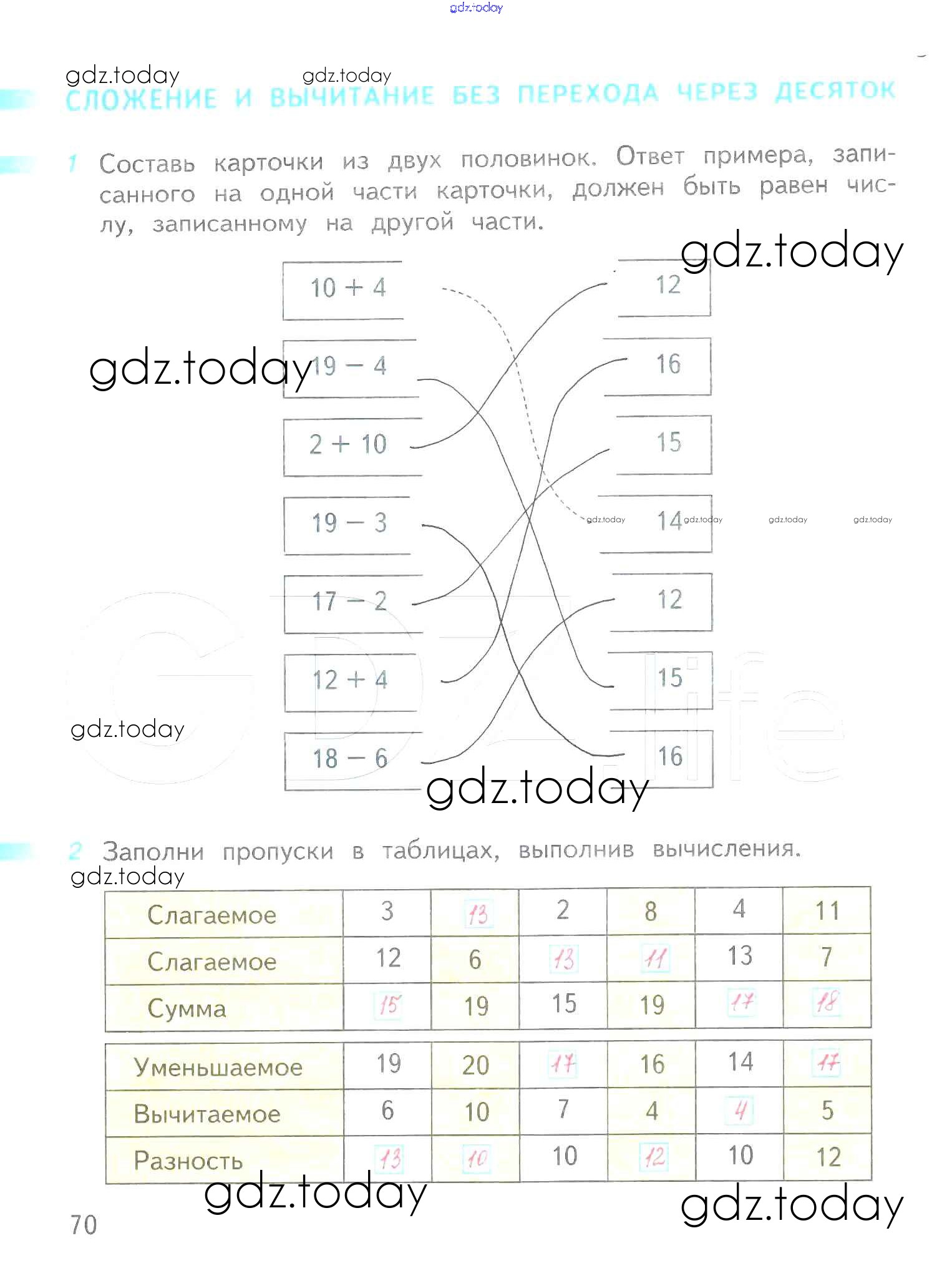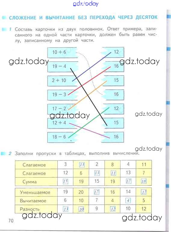 На страницах сайта gdz.today вы найдете учебный и вспомогательный материал, направленный на улучшения знаний школьной программы. ГДЗ - онлайн мир знаний Решение к части 2 (страницы) 70 Рабочей тетради по Математике для 1 класса Дорофеев, Миракова Просвещение Перспектива 2016