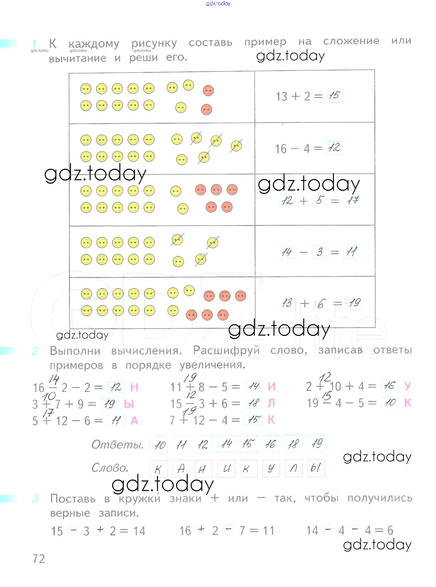 На страницах сайта gdz.today вы найдете учебный и вспомогательный материал, направленный на улучшения знаний школьной программы. ГДЗ - онлайн мир знаний Решение к части 2 (страницы) 72 Рабочей тетради по Математике для 1 класса Дорофеев, Миракова Просвещение Перспектива 2016