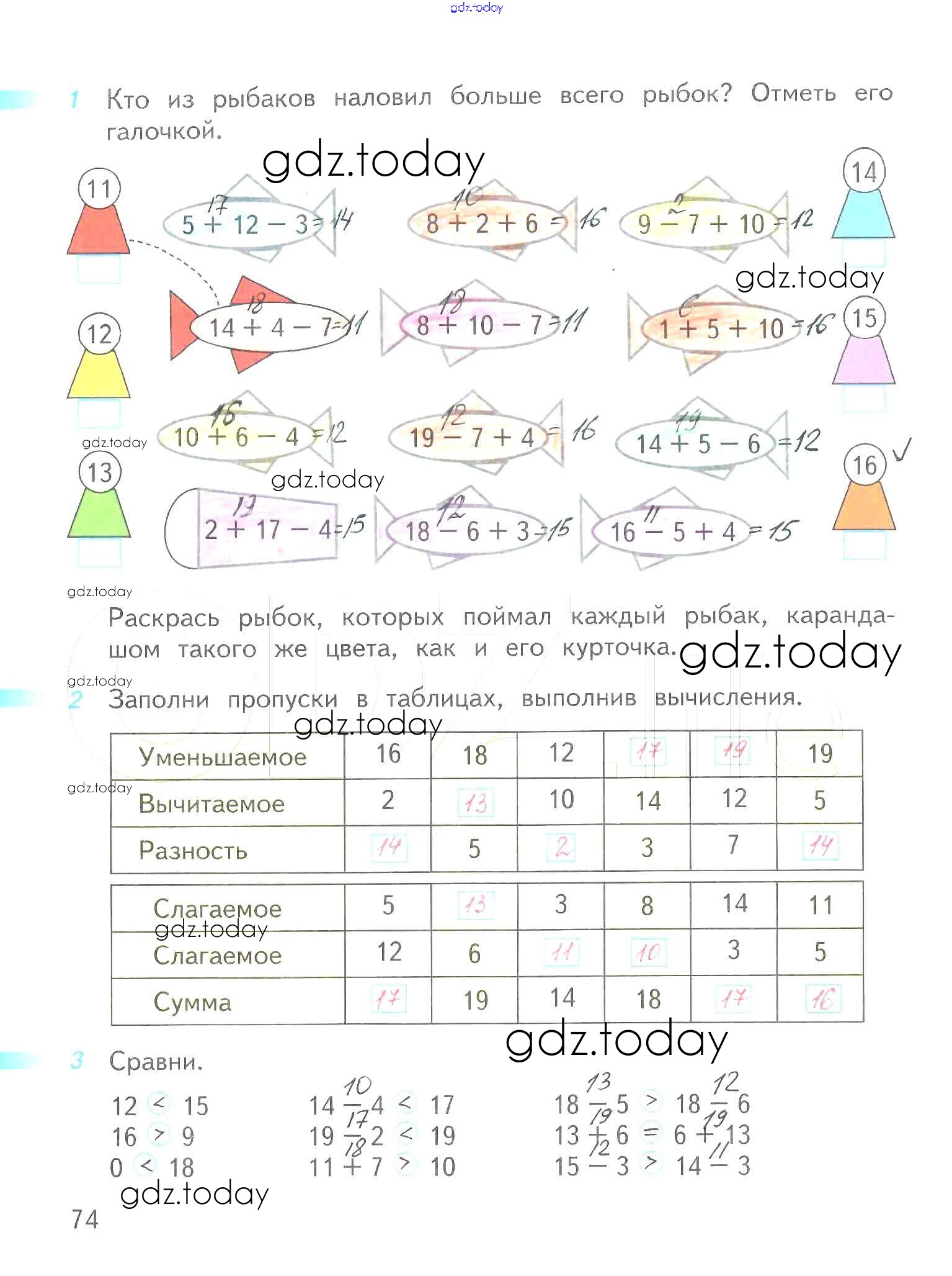 На страницах сайта gdz.today вы найдете учебный и вспомогательный материал, направленный на улучшения знаний школьной программы. ГДЗ - онлайн мир знаний Решение к части 2 (страницы) 74 Рабочей тетради по Математике для 1 класса Дорофеев, Миракова Просвещение Перспектива 2016