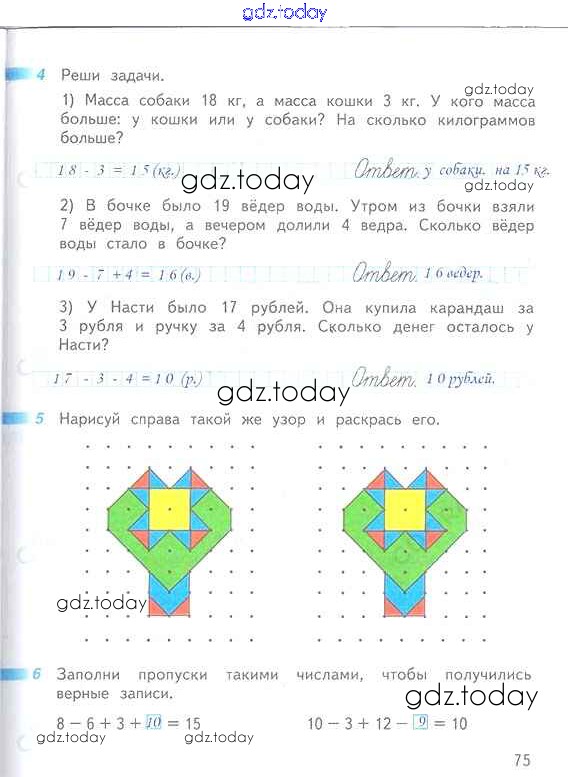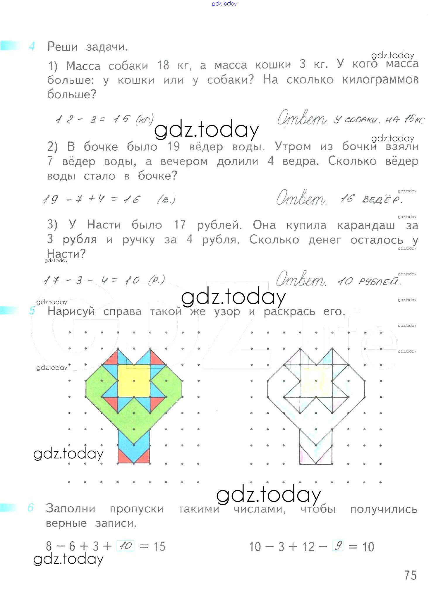 Ответы к Решение к части 2 (страницы) 75 Рабочей тетради по Математике для 1 класса Дорофеев, Миракова Просвещение Перспектива 2016