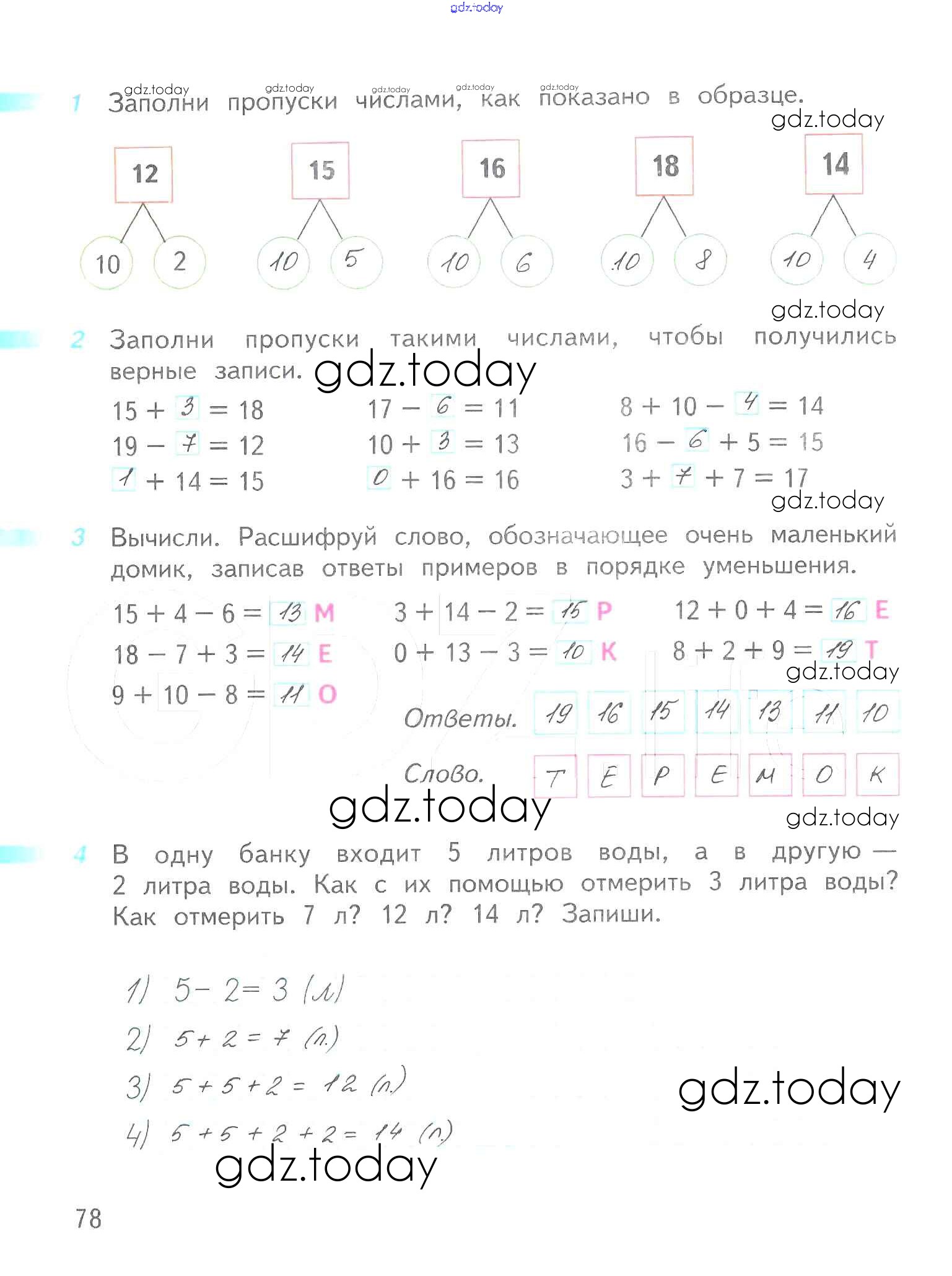 Ответы к Решение к части 2 (страницы) 78 Рабочей тетради по Математике для 1 класса Дорофеев, Миракова Просвещение Перспектива 2016