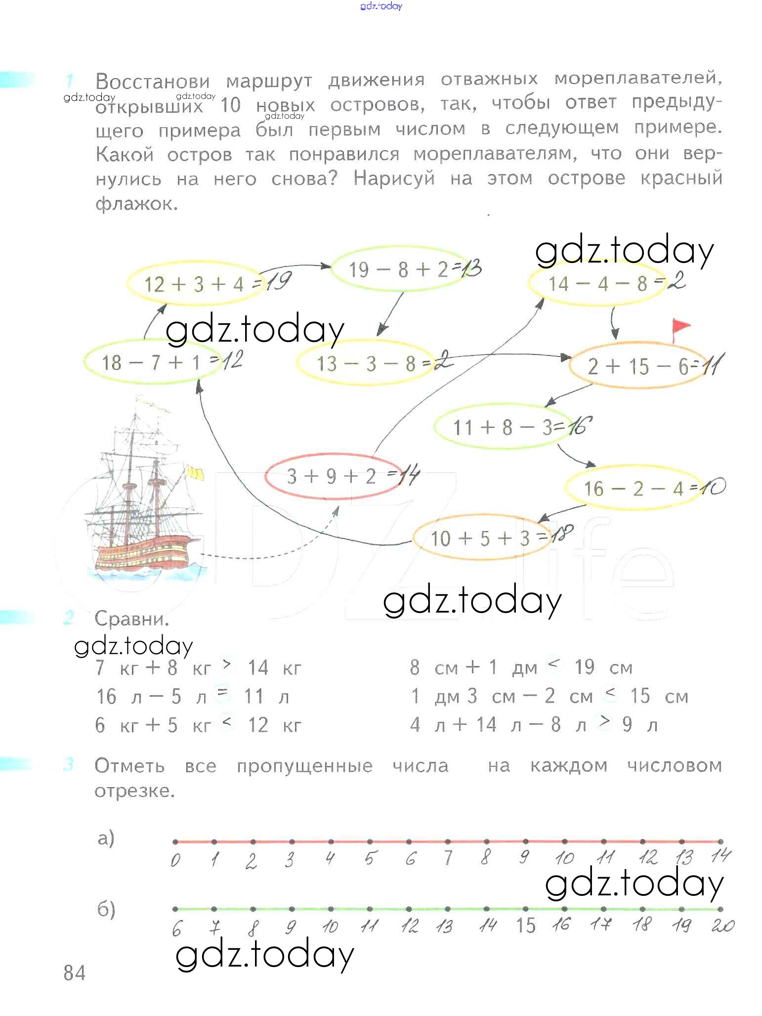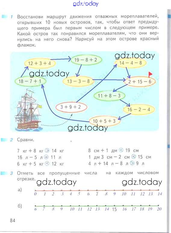 На страницах сайта gdz.today вы найдете учебный и вспомогательный материал, направленный на улучшения знаний школьной программы. ГДЗ - онлайн мир знаний Решение к части 2 (страницы) 84 Рабочей тетради по Математике для 1 класса Дорофеев, Миракова Просвещение Перспектива 2016