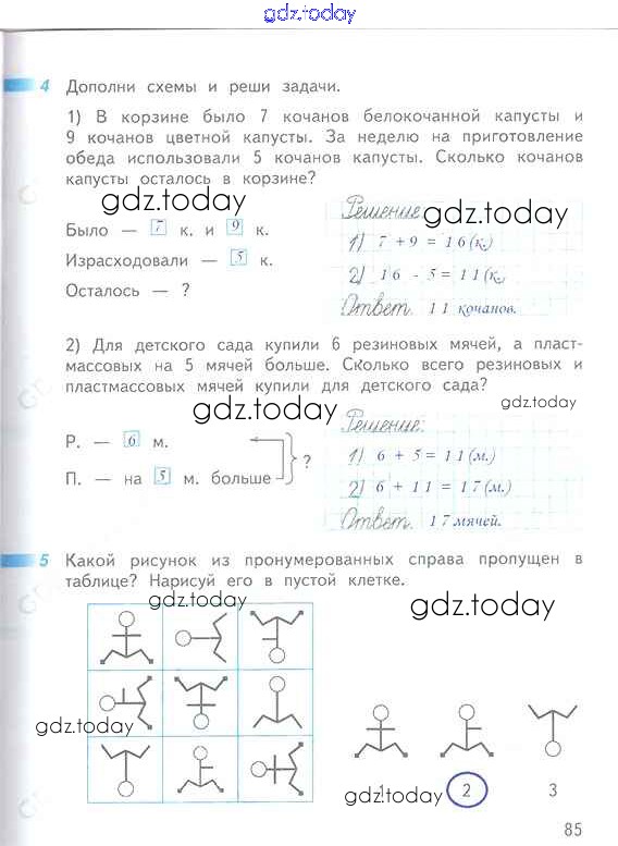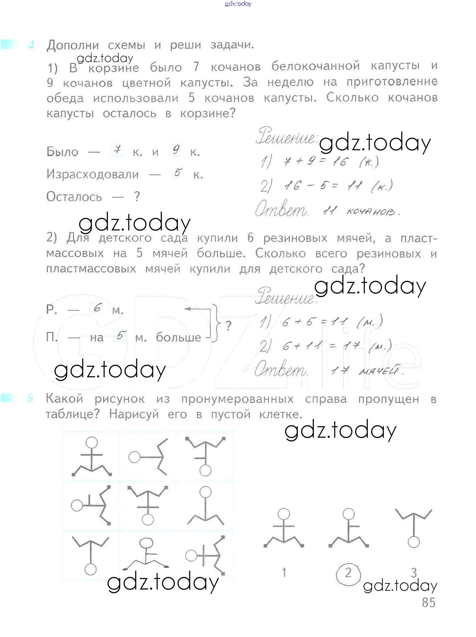 Ответы к Решение к части 2 (страницы) 85 Рабочей тетради по Математике для 1 класса Дорофеев, Миракова Просвещение Перспектива 2016