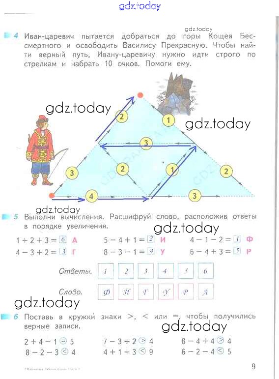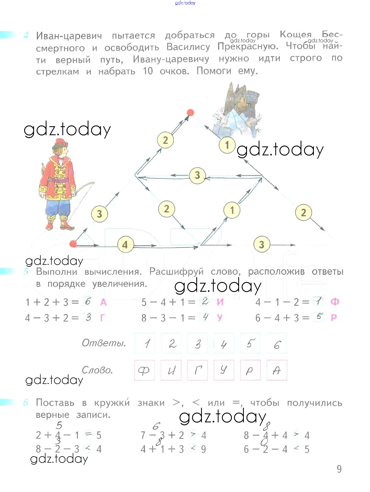 Ответы к Решение к части 2 (страницы) 9 Рабочей тетради по Математике для 1 класса Дорофеев, Миракова Просвещение Перспектива 2016