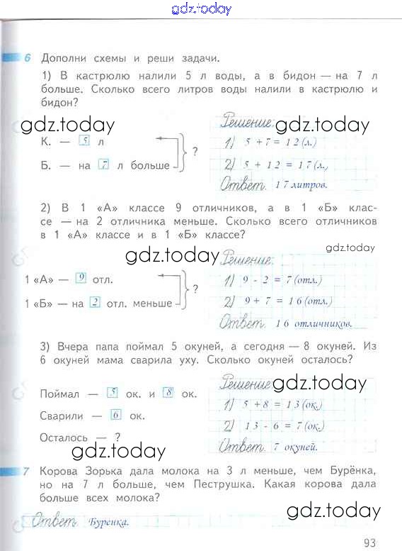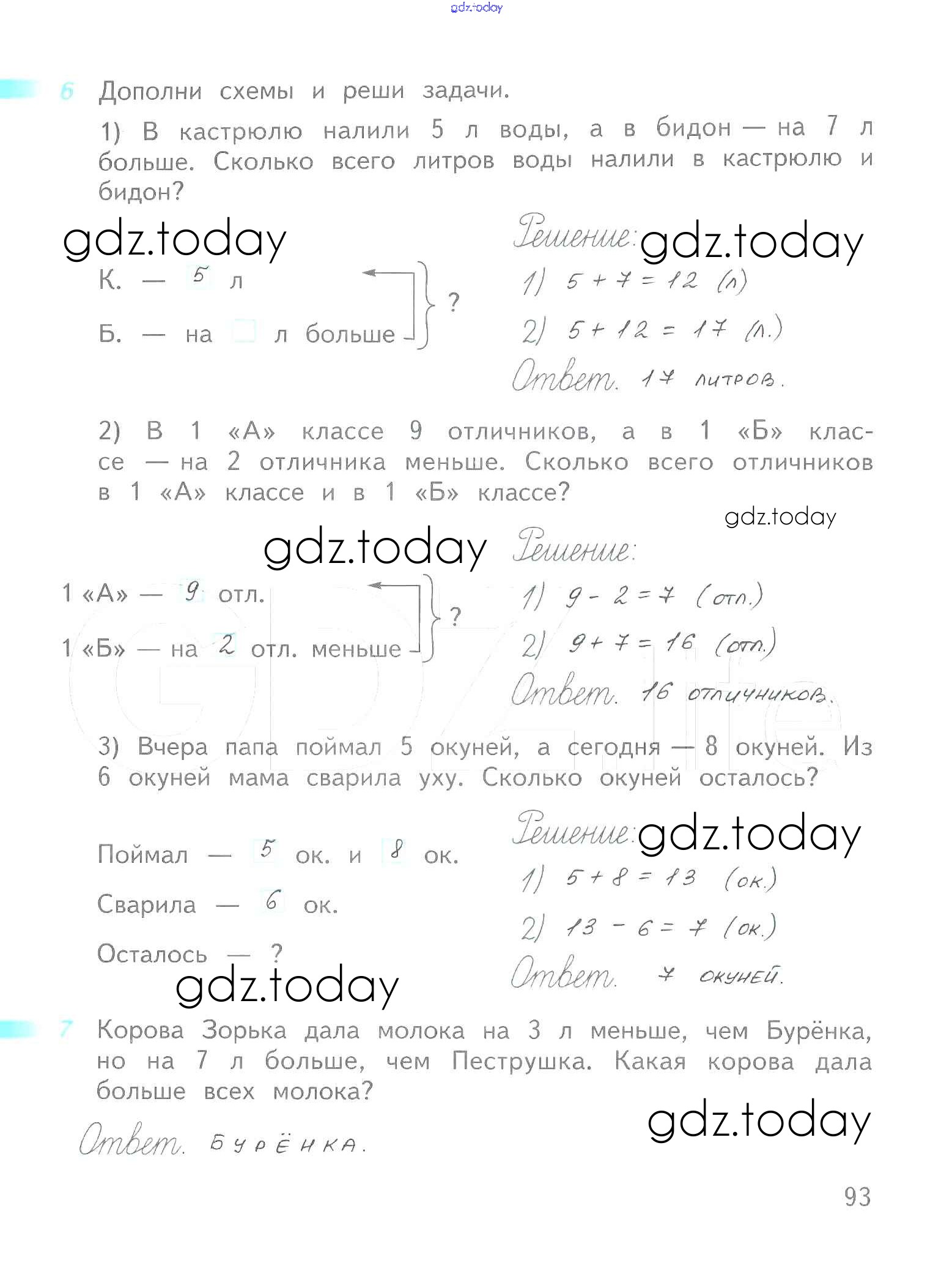 Ответы к Решение к части 2 (страницы) 93 Рабочей тетради по Математике для 1 класса Дорофеев, Миракова Просвещение Перспектива 2016