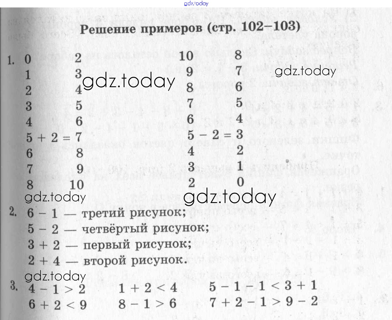 На страницах сайта gdz.today вы найдете учебный и вспомогательный материал, направленный на улучшения знаний школьной программы. ГДЗ - онлайн мир знаний Решение к части 1. Страницы 102 Учебнику по Математике для 1 класса Дорофеев, Миракова Просвещение Перспектива 2015