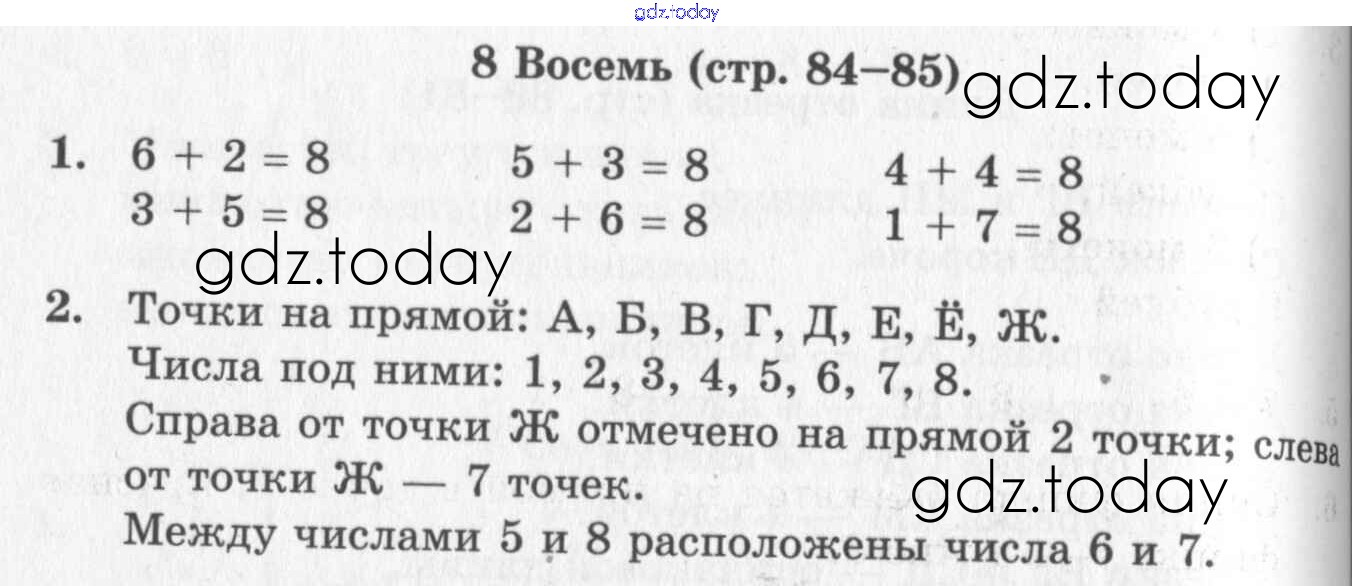 На страницах сайта gdz.today вы найдете учебный и вспомогательный материал, направленный на улучшения знаний школьной программы. ГДЗ - онлайн мир знаний Решение к части 1. Страницы 84 Учебнику по Математике для 1 класса Дорофеев, Миракова Просвещение Перспектива 2015