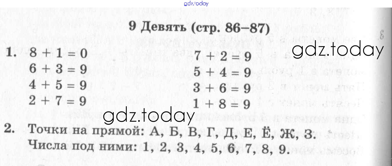 На страницах сайта gdz.today вы найдете учебный и вспомогательный материал, направленный на улучшения знаний школьной программы. ГДЗ - онлайн мир знаний Решение к части 1. Страницы 86 Учебнику по Математике для 1 класса Дорофеев, Миракова Просвещение Перспектива 2015