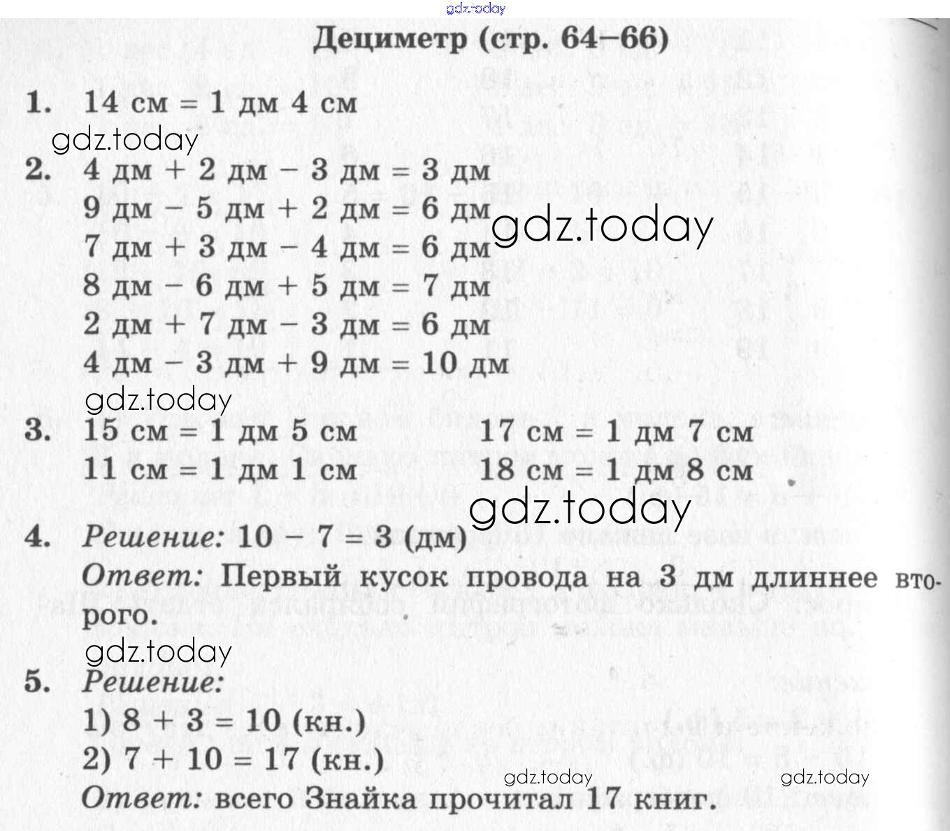 Ответы к Решение к части 2. Страницы 64 Учебнику по Математике для 1 класса Дорофеев, Миракова Просвещение Перспектива 2015