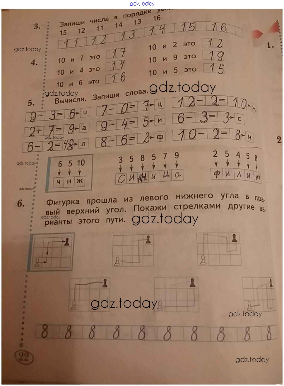На страницах сайта gdz.today вы найдете учебный и вспомогательный материал, направленный на улучшения знаний школьной программы. ГДЗ - онлайн мир знаний Решение к части 2. Страницы 22 Рабочей тетради по Математике для 1 класса Кочурова Вентана-граф Начальная школа XXI века 2020
