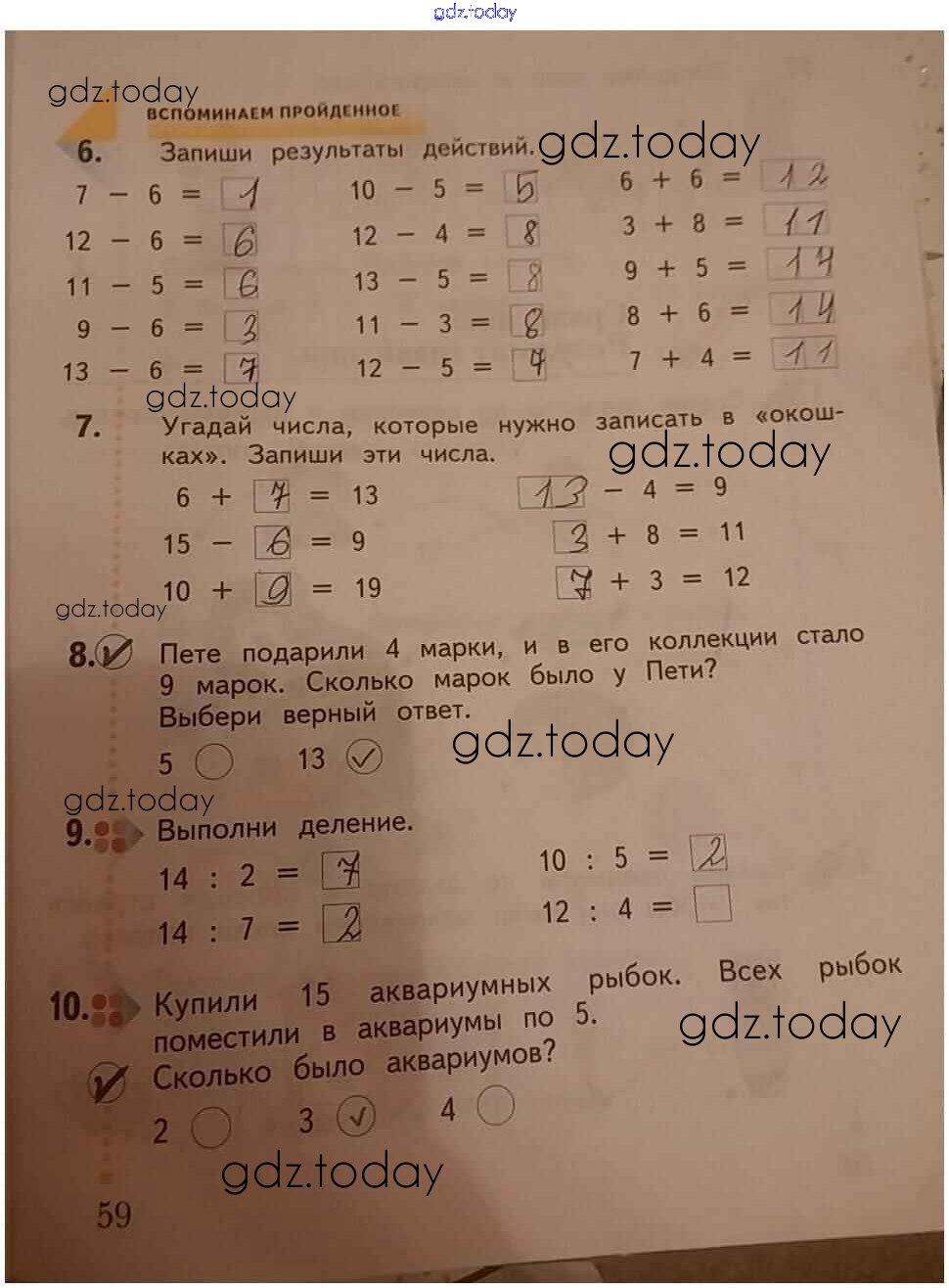 На страницах сайта gdz.today вы найдете учебный и вспомогательный материал, направленный на улучшения знаний школьной программы. ГДЗ - онлайн мир знаний Решение к части 2. Страницы 59 Рабочей тетради по Математике для 1 класса Кочурова Вентана-граф Начальная школа XXI века 2020