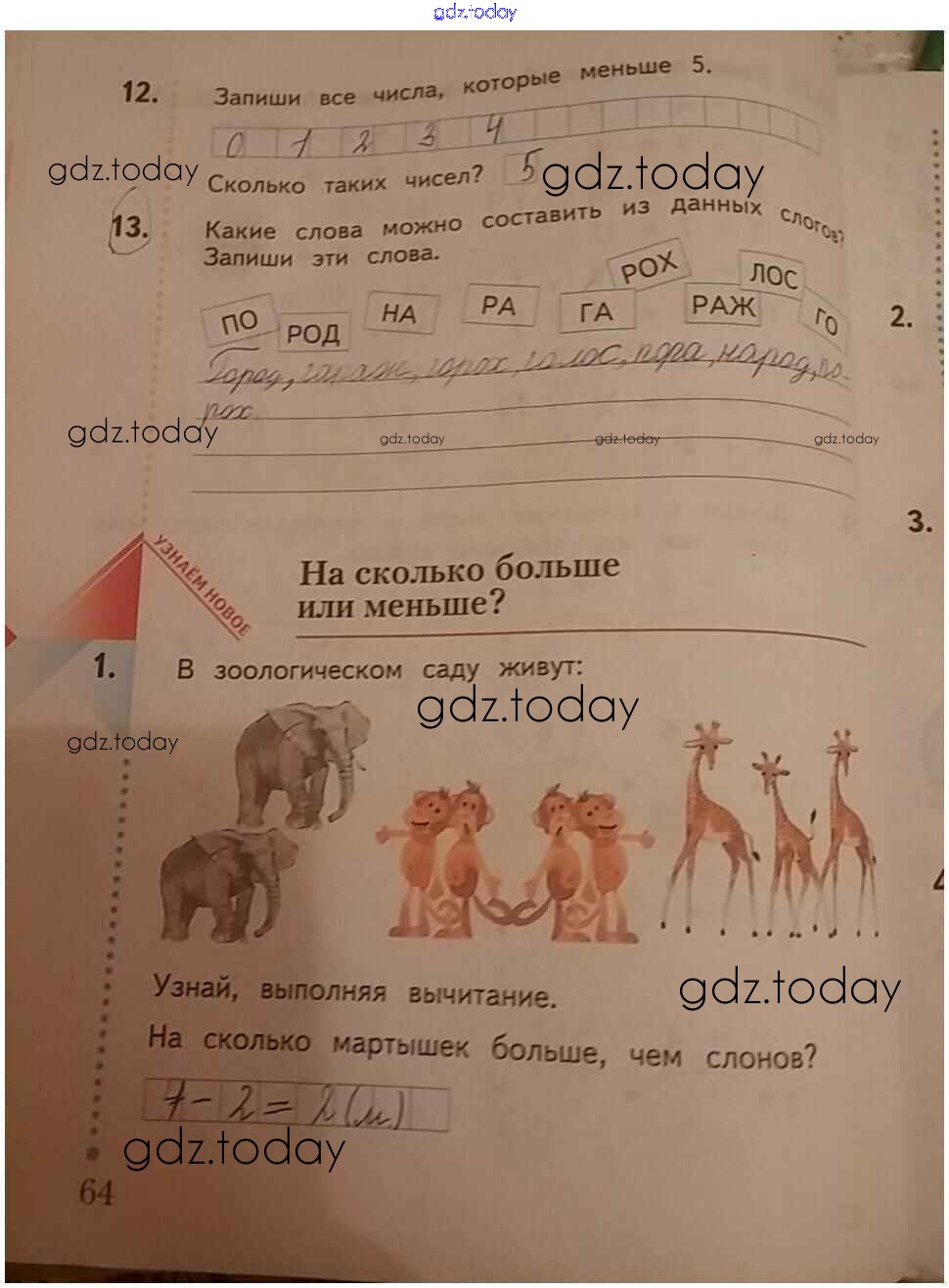 На страницах сайта gdz.today вы найдете учебный и вспомогательный материал, направленный на улучшения знаний школьной программы. ГДЗ - онлайн мир знаний Решение к части 2. Страницы 64 Рабочей тетради по Математике для 1 класса Кочурова Вентана-граф Начальная школа XXI века 2020