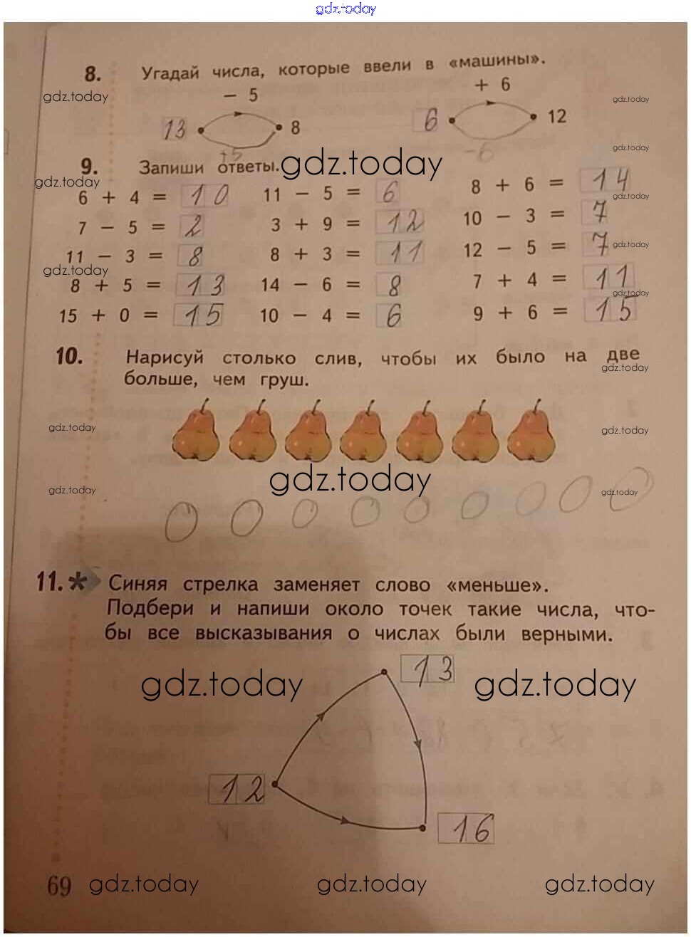 На страницах сайта gdz.today вы найдете учебный и вспомогательный материал, направленный на улучшения знаний школьной программы. ГДЗ - онлайн мир знаний Решение к части 2. Страницы 69 Рабочей тетради по Математике для 1 класса Кочурова Вентана-граф Начальная школа XXI века 2020