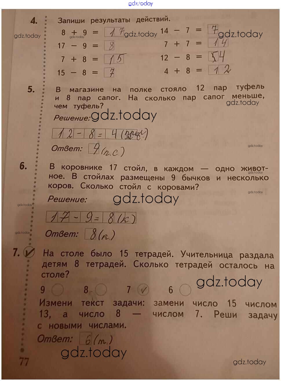 На страницах сайта gdz.today вы найдете учебный и вспомогательный материал, направленный на улучшения знаний школьной программы. ГДЗ - онлайн мир знаний Решение к части 2. Страницы 77 Рабочей тетради по Математике для 1 класса Кочурова Вентана-граф Начальная школа XXI века 2020