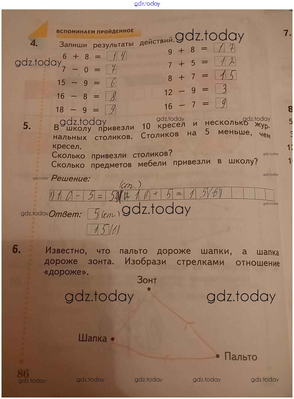 На страницах сайта gdz.today вы найдете учебный и вспомогательный материал, направленный на улучшения знаний школьной программы. ГДЗ - онлайн мир знаний Решение к части 2. Страницы 86 Рабочей тетради по Математике для 1 класса Кочурова Вентана-граф Начальная школа XXI века 2020