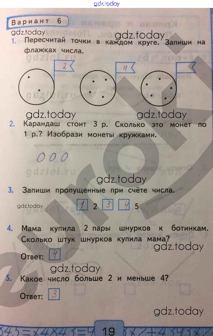 На страницах сайта gdz.today вы найдете учебный и вспомогательный материал, направленный на улучшения знаний школьной программы. ГДЗ - онлайн мир знаний Решение к части 1. Страницы 19 Контрольным работам по Математике для 1 класса Рудницкая Экзамен УМК 2014