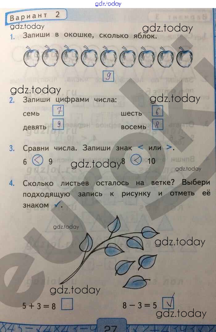 На страницах сайта gdz.today вы найдете учебный и вспомогательный материал, направленный на улучшения знаний школьной программы. ГДЗ - онлайн мир знаний Решение к части 1. Страницы 27 Контрольным работам по Математике для 1 класса Рудницкая Экзамен УМК 2014