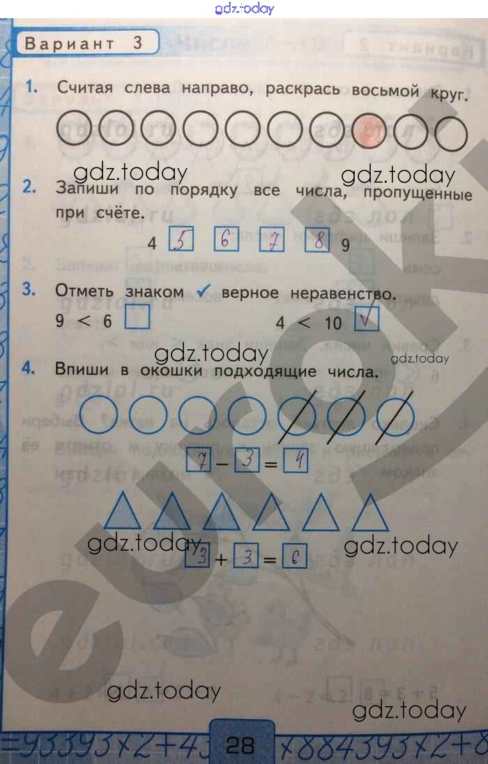 На страницах сайта gdz.today вы найдете учебный и вспомогательный материал, направленный на улучшения знаний школьной программы. ГДЗ - онлайн мир знаний Решение к части 1. Страницы 28 Контрольным работам по Математике для 1 класса Рудницкая Экзамен УМК 2014