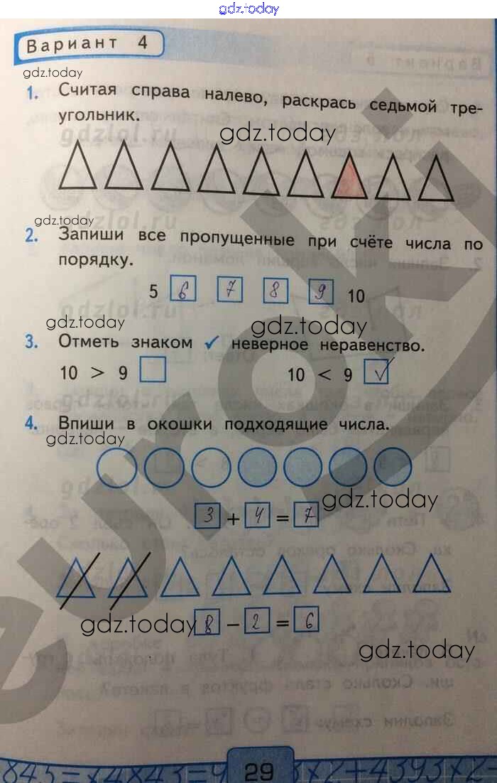 На страницах сайта gdz.today вы найдете учебный и вспомогательный материал, направленный на улучшения знаний школьной программы. ГДЗ - онлайн мир знаний Решение к части 1. Страницы 29 Контрольным работам по Математике для 1 класса Рудницкая Экзамен УМК 2014