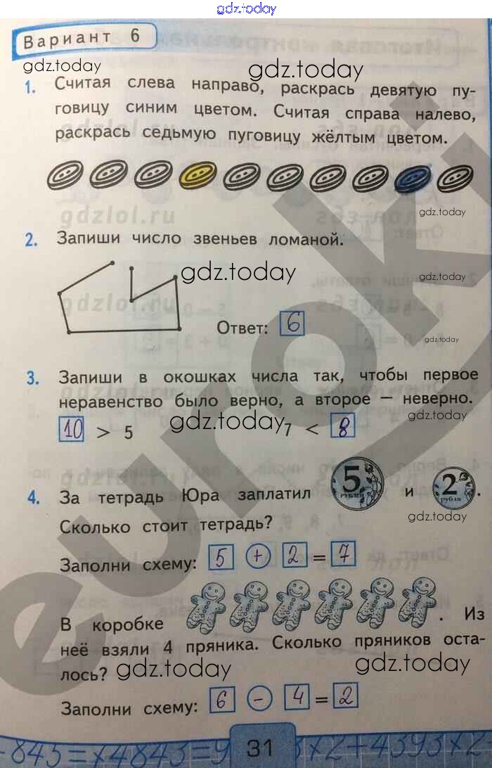 На страницах сайта gdz.today вы найдете учебный и вспомогательный материал, направленный на улучшения знаний школьной программы. ГДЗ - онлайн мир знаний Решение к части 1. Страницы 31 Контрольным работам по Математике для 1 класса Рудницкая Экзамен УМК 2014