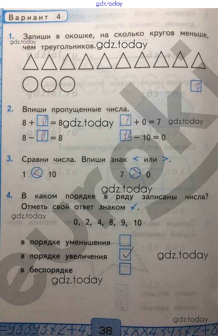 На страницах сайта gdz.today вы найдете учебный и вспомогательный материал, направленный на улучшения знаний школьной программы. ГДЗ - онлайн мир знаний Решение к части 1. Страницы 38 Контрольным работам по Математике для 1 класса Рудницкая Экзамен УМК 2014