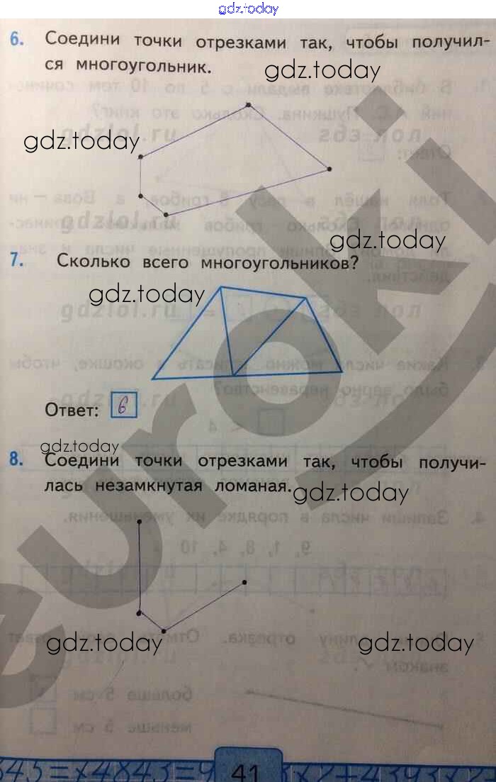 На страницах сайта gdz.today вы найдете учебный и вспомогательный материал, направленный на улучшения знаний школьной программы. ГДЗ - онлайн мир знаний Решение к части 1. Страницы 41 Контрольным работам по Математике для 1 класса Рудницкая Экзамен УМК 2014