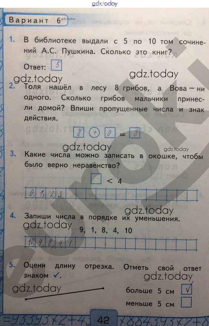 На страницах сайта gdz.today вы найдете учебный и вспомогательный материал, направленный на улучшения знаний школьной программы. ГДЗ - онлайн мир знаний Решение к части 1. Страницы 42 Контрольным работам по Математике для 1 класса Рудницкая Экзамен УМК 2014
