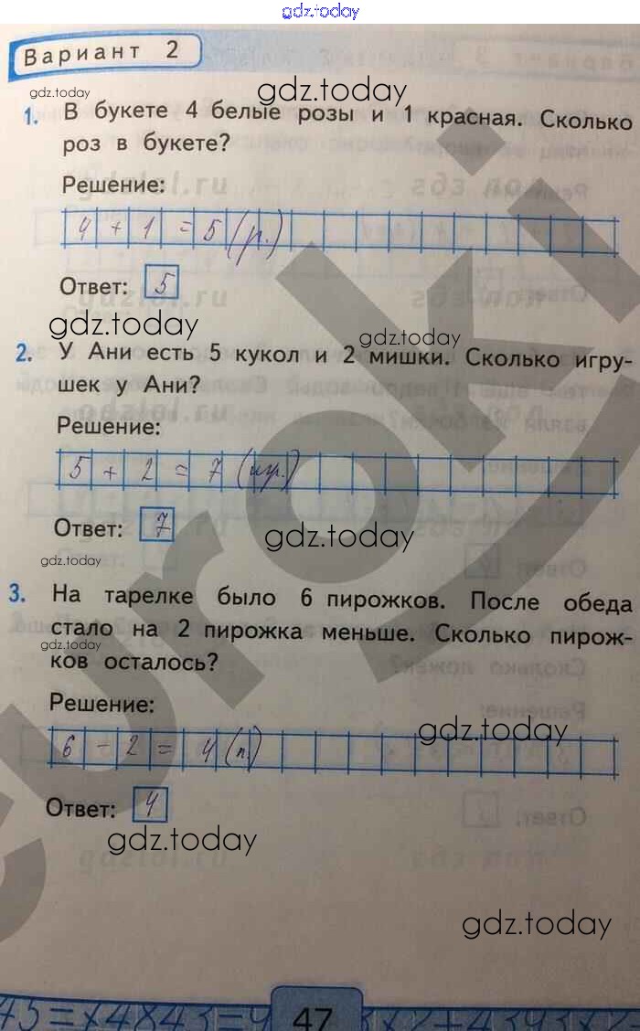 Ответы к Решение к части 1. Страницы 47 Контрольным работам по Математике для 1 класса Рудницкая Экзамен УМК 2014