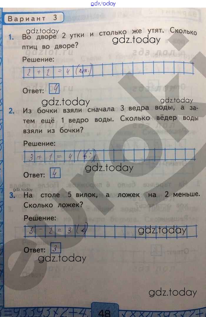 Ответы к Решение к части 1. Страницы 48 Контрольным работам по Математике для 1 класса Рудницкая Экзамен УМК 2014
