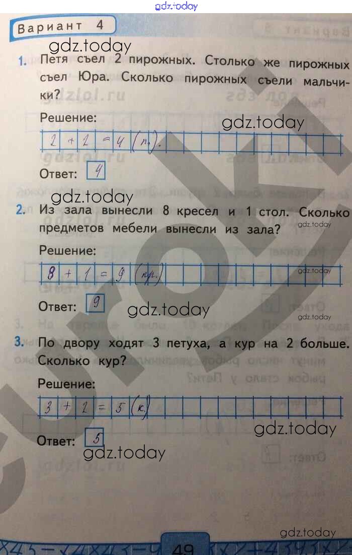 Ответы к Решение к части 1. Страницы 49 Контрольным работам по Математике для 1 класса Рудницкая Экзамен УМК 2014